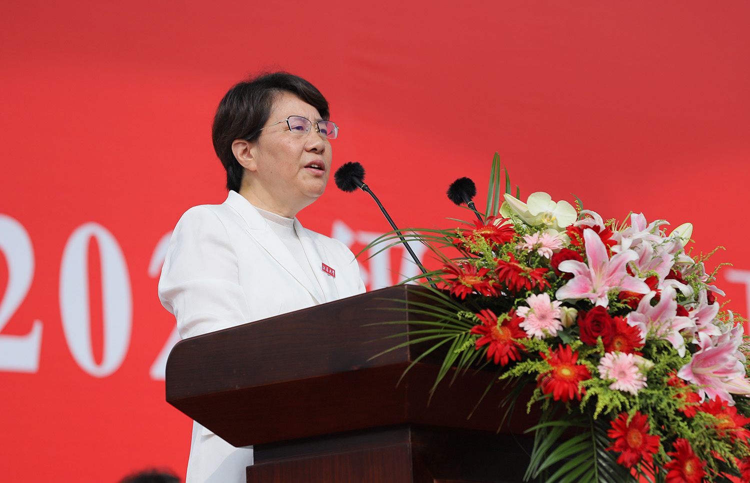 典礼上,校长邢卫红讲话,代表学校向全体2023级新生表示热烈欢迎,向辛勤指导训练的军训教官致以崇高敬意。邢卫红说,乐鱼线上平台(集团)官方网站历史悠久、底蕴深厚,鸿儒云集、人才辈出,特色鲜明、使命光荣,同学们在这里求学逐梦,故事会更加精彩,将来大有可为。邢卫红用三句话与全体新生共勉:一是“博学”,把学习作为第一任务,在博学善思中筑牢成长根基;二是“求是”,把创新作为第一本领,在求是探索中增长智慧才干;三是“明德”,把人品作为最高学历,在明德笃行中担当时代大任。邢卫红希望全体新生惜时如金、晴耕雨读,在“博学、求是、明德”校训和“自强厚德,实干求真”乐鱼线上平台(集团)官方网站精神指引下,创造更多精彩,成就美好将来。她也提出一个小希望:同学们要养成习惯,每天给家人报平安、与家人分享校园生活。