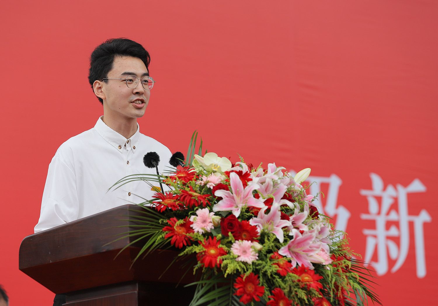 教师代表、流体中心党委书记张德胜,校友代表、汽车学院2022届硕士毕业生、中国科学院工程热物理研究所在读博士生方钰,老生代表、校研究生会主席团成员、2022级硕士研究生牧佳霖,新生代表、能源研究院动力工程专业2023级研究生党夏威,新生代表、管理学院工商管理专业2023级本科生梁亦南,新生代表、医学院2023级外科学专业留学生安妮分别在典礼上发言。