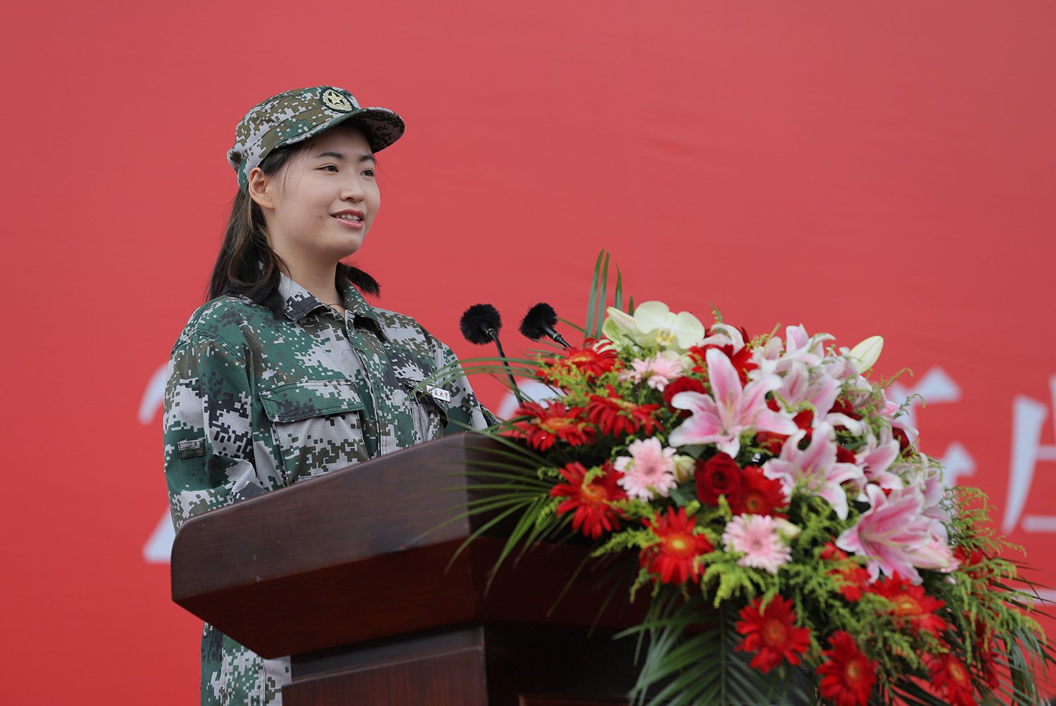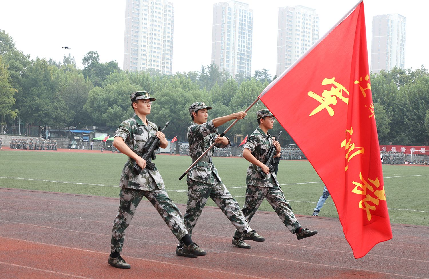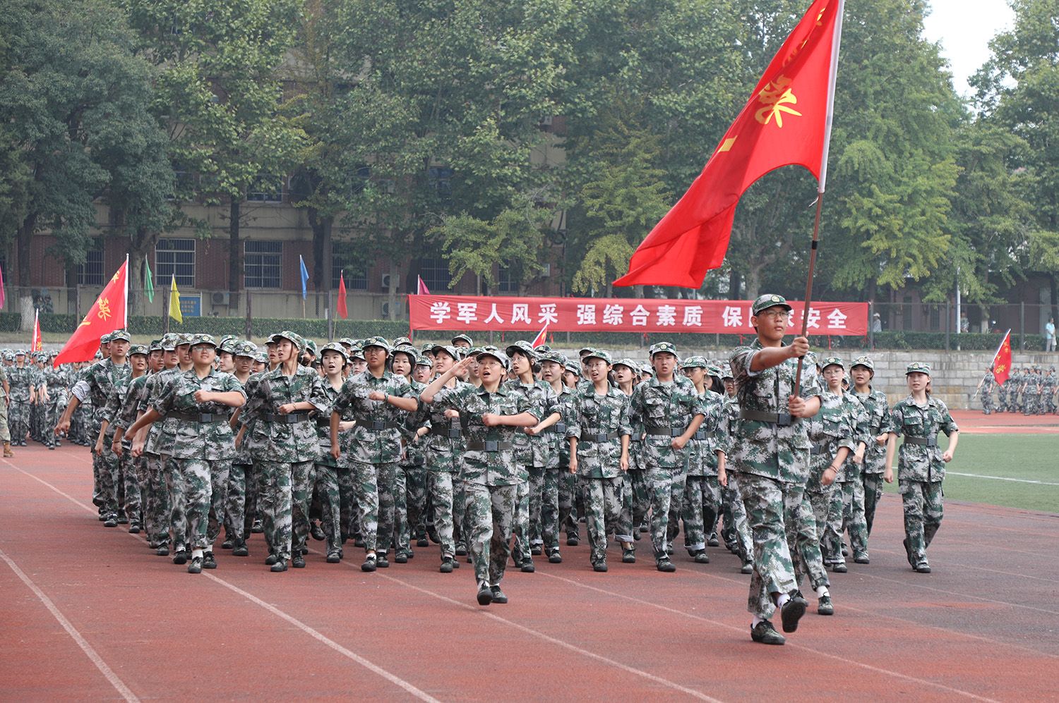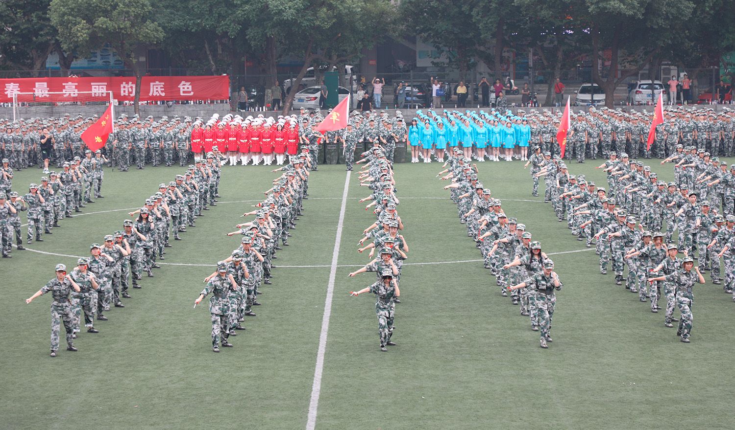 军训成果汇报大会在《中国人民解放军进行曲》的旋律中圆满结束。