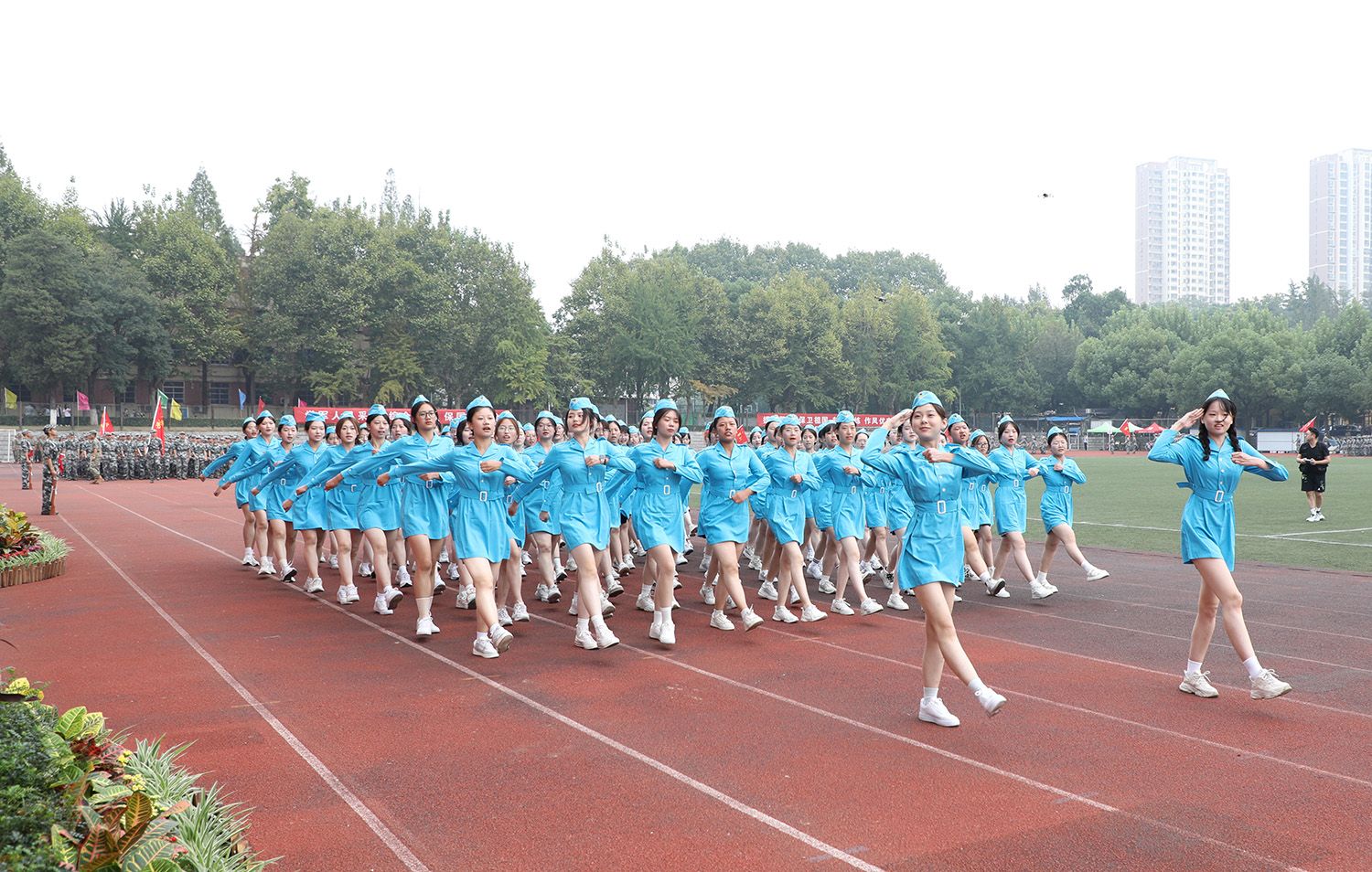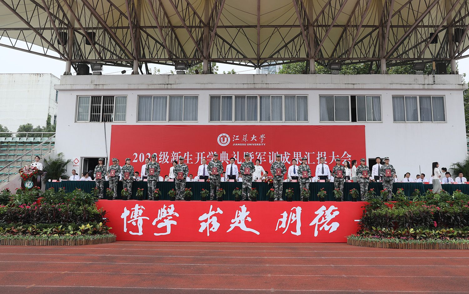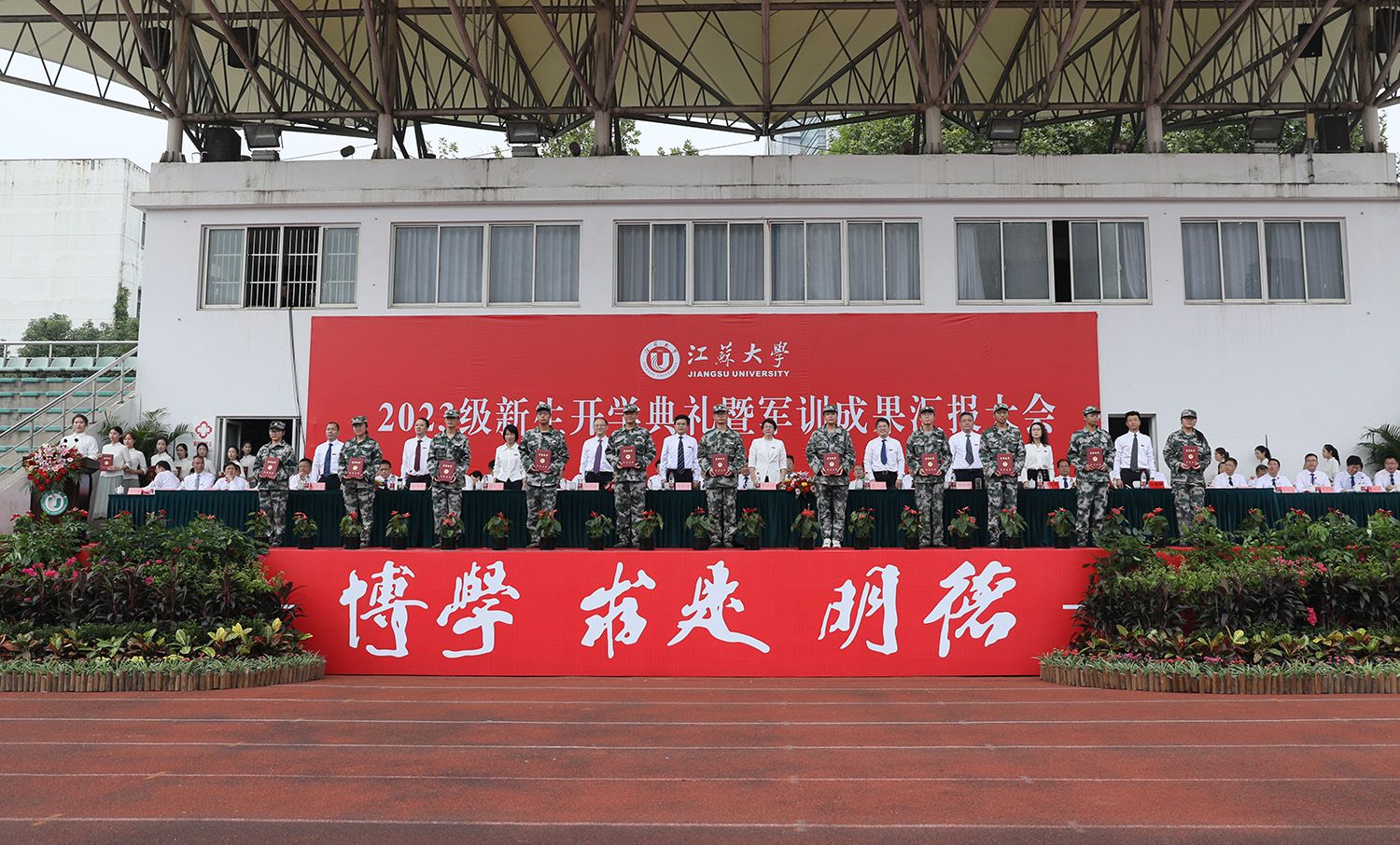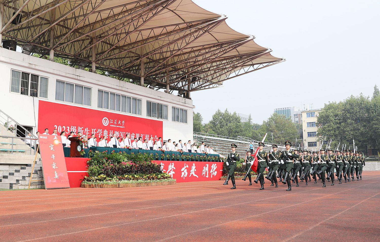 开学典礼后,举行了2023级新生军训成果汇报大会。