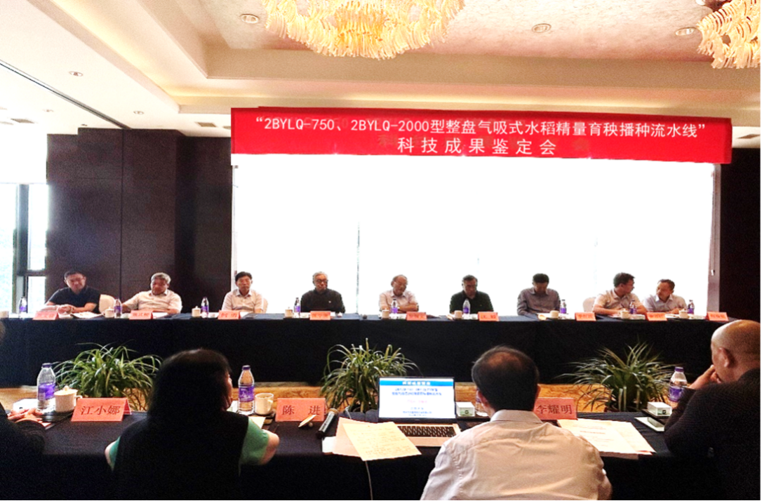 9月16日,中国机械工业联合会在常州市主持召开科技成果鉴定会,由乐鱼线上平台(集团)官方网站和常州市风雷精密机械有限公司共同完成的“2BYLQ-750、2BYLQ-2000型整盘气吸式水稻精量育秧播种流水线”顺利通过科技成果鉴定。