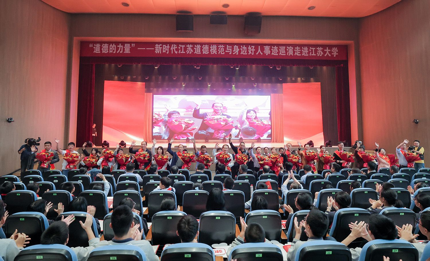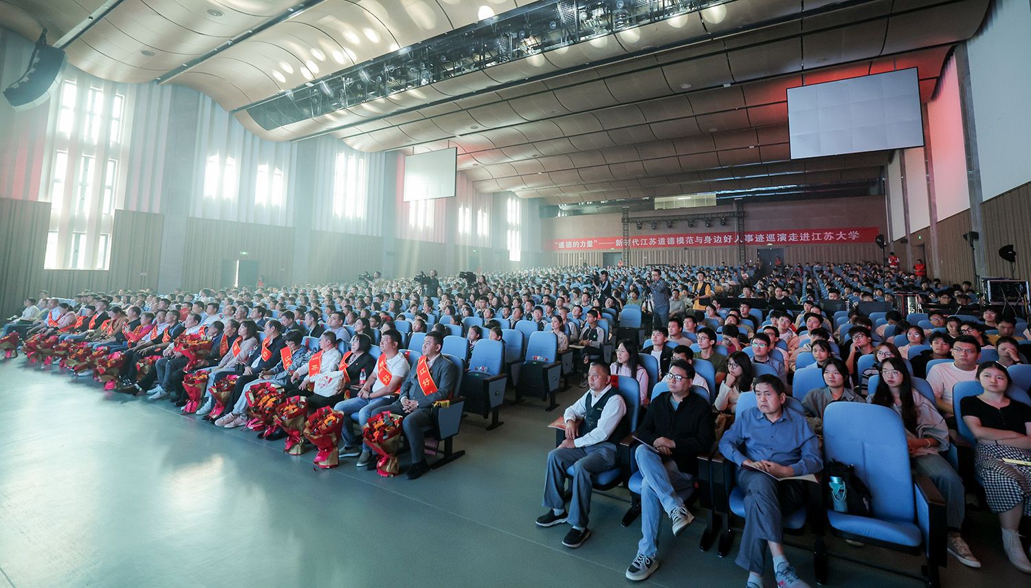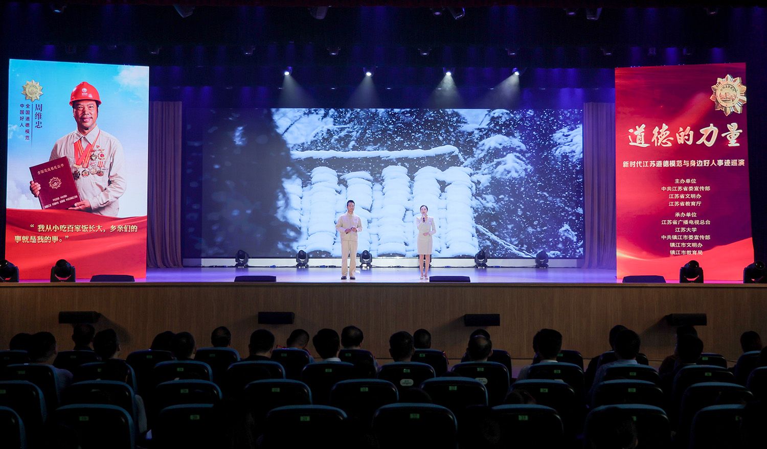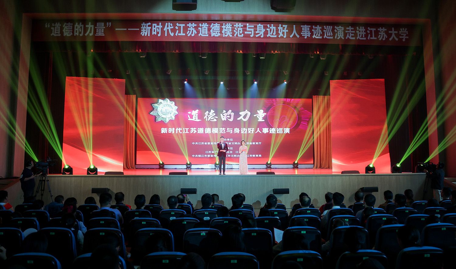 10月25日,由中共江苏省委宣传部、江苏省文明办、江苏省教育厅主办,江苏省广播电视总台、乐鱼线上平台(集团)官方网站、中共镇江市委宣传部、镇江市文明办、镇江市教育局承办的“道德的力量”——新时代江苏道德模范与身边好人事迹高校巡演走进我校。