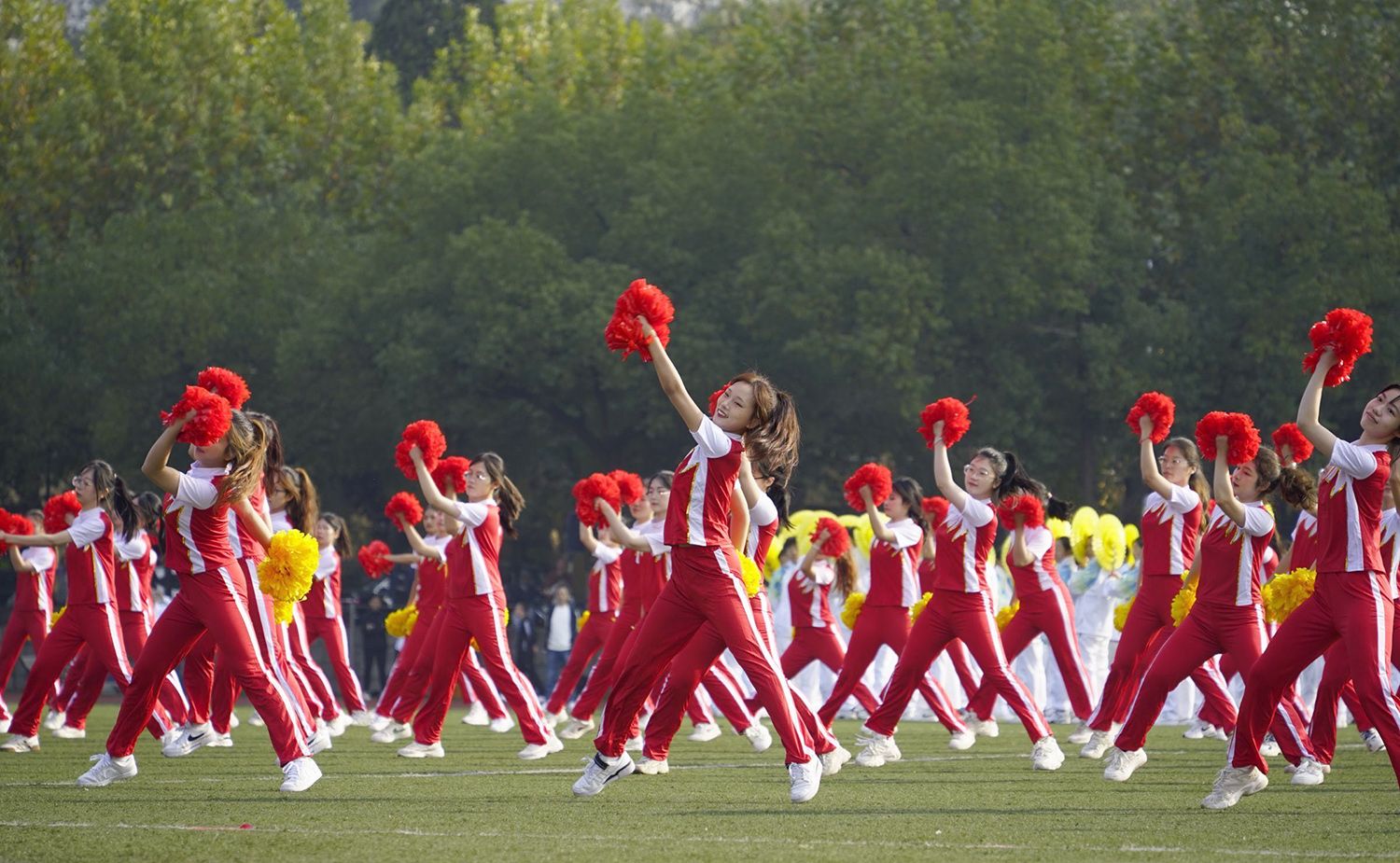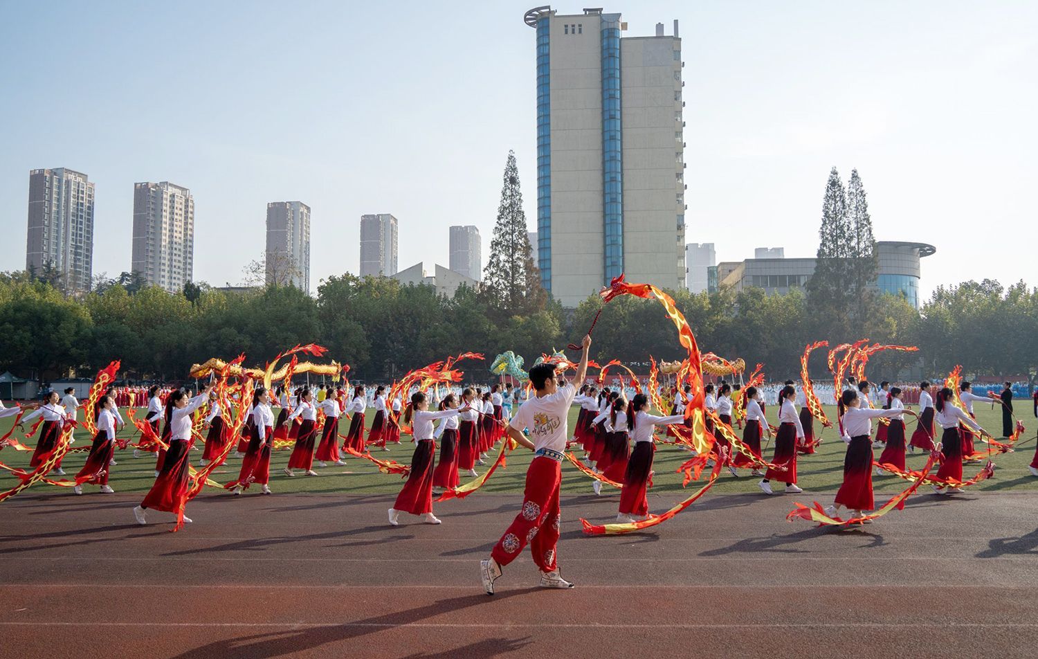 张济建宣布乐鱼线上平台(集团)官方网站第二十二届运动会开幕。开幕式上,学生进行了舞龙舞狮、排舞表演,教职工进行了太极扇等表演。