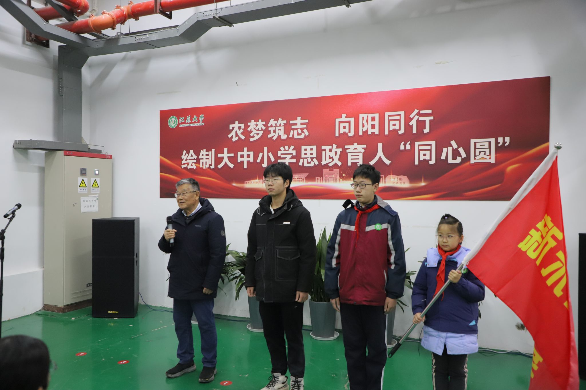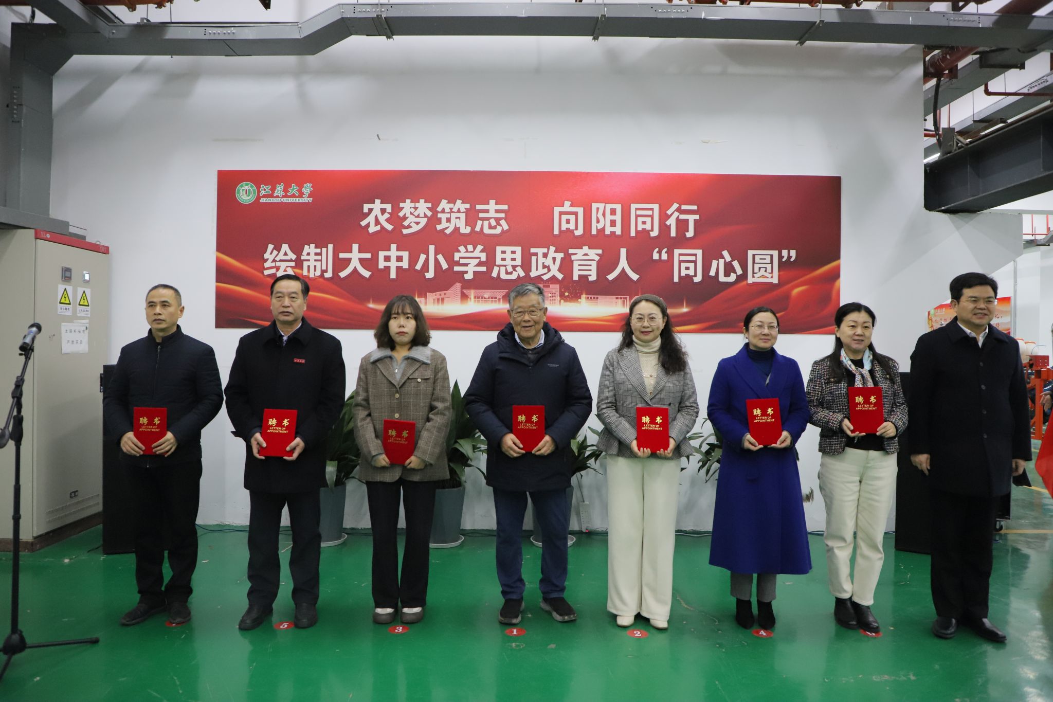 1月4日,由党委宣传部主办的“农梦筑志 向阳同行”绘制大中小学思政育人“同心圆”主题活动在耒耜大楼举行。“全国脱贫攻坚楷模”“时代楷模”赵亚夫,校党委书记李洪波,校党委常委、副校长李红,新华日报社镇江分社社长晏培娟,校党委常委、党委宣传部部长、党委统战部部长吴麟麟,以及镇江新区永兴农机机械化专业合作社、农业工程学院、马克思主义学院、思想政治工作研究院、乐鱼线上平台(集团)官方网站附属学校的师生代表参加活动。活动仪式由李红主持。