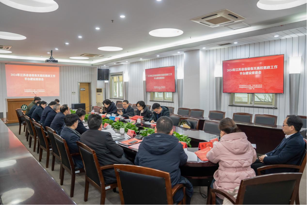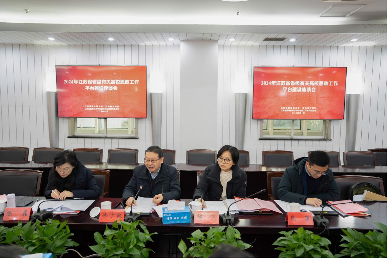1月25日,2024年江苏省省级有关高校思想政治工作平台建设座谈会在我校举行。省教育厅一级巡视员徐子敏,南京工业大学党委常委、副校长刘大卫,苏州大学党委常委、副校长查佐明,南通大学党委常委、副校长吉明明,乐鱼线上平台(集团)官方网站党委常委、副校长任旭东,南京师范大学党委常委、宣传部部长宋喆,省教育厅社政处处长邹燕、一级主任科员陈磊、挂职干部熊潇,以及省网络思政中心(易班中心)、8个省级高校辅导员培训与研修基地负责人参加座谈会。