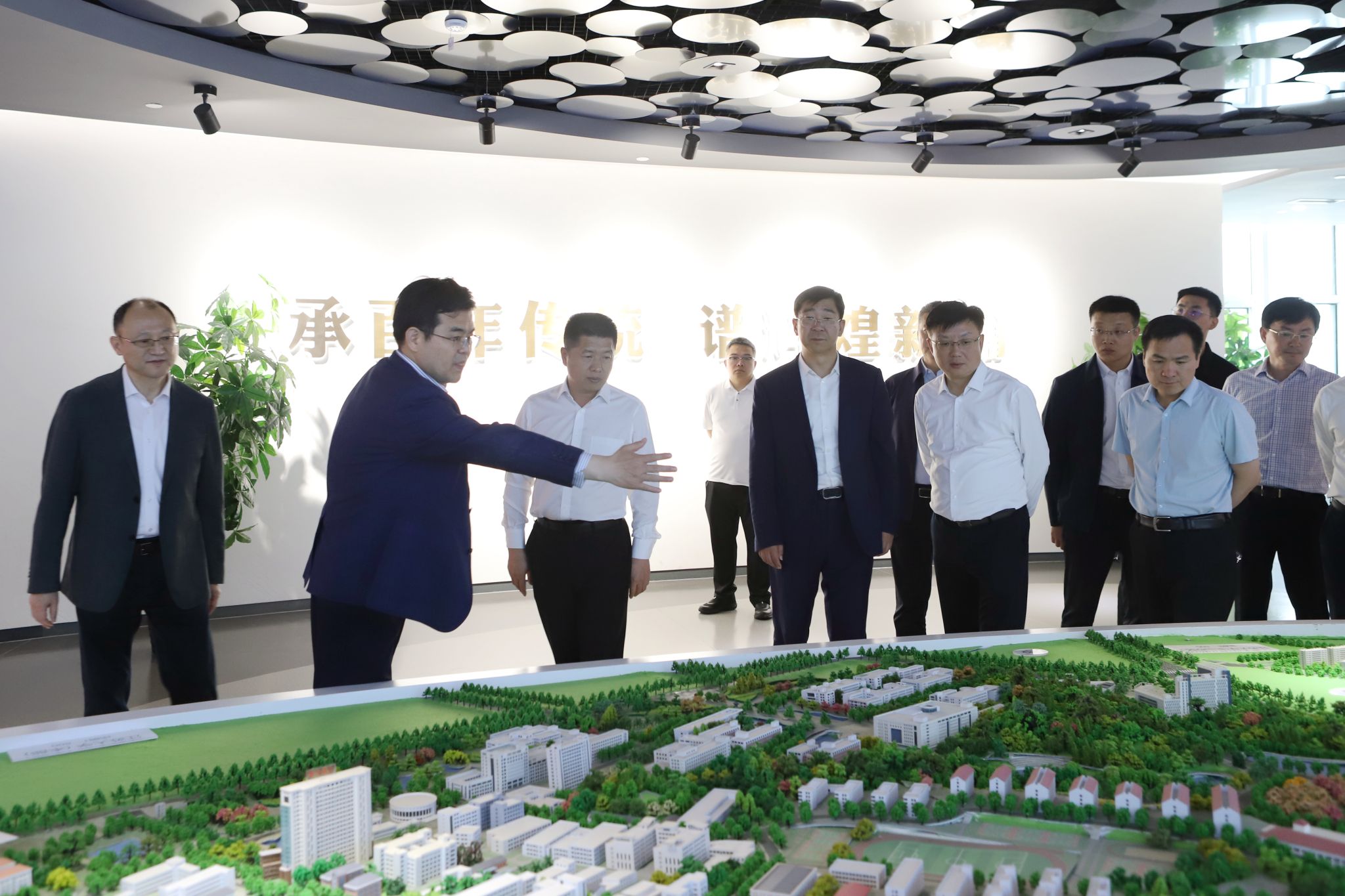 师市、镇江市相关部门领导,学校党委组织部、党办、校办等部门负责人陪同参观。(校长办公室)