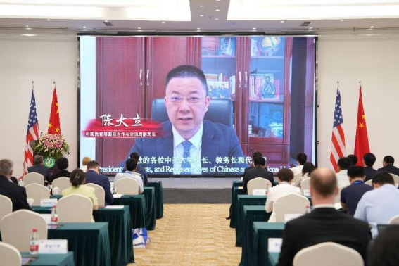 陈大立在视频致辞中表示,《中美人才培养计划》121项目是中美人文交流的典型项目,20多年来为中美两国高校间开展深层次、宽领域、实质性交流搭建了强有力的平台,希望中美大学坚持合作,互利共赢,不断丰富合作内涵,关注和保障人才培养质量。他提出,中美高校在促进教育交流的同时,也力争为促进中美省州地方的经贸发展和区域合作贡献力量。