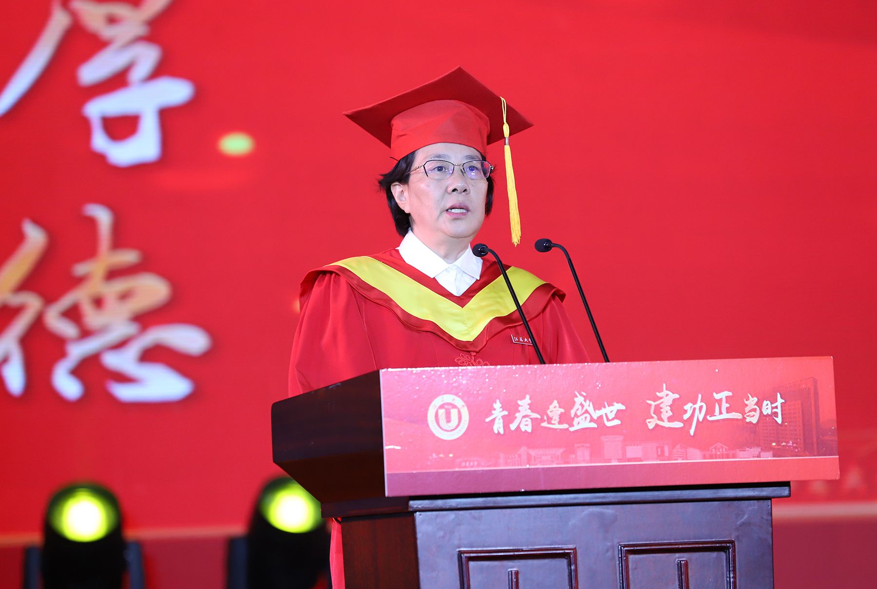 校长邢卫红发表题为《青春不设限 未来更无限》的讲话。她代表学校向即将踏上新征程的全体毕业生致以最热烈的祝贺。邢卫红在讲话中深情寄语,充分肯定毕业生们在校取得的优异成绩,鼓励同学们继续与伟大时代同向同行,在更广阔的天地绽放更大的荣光。邢卫红说,在乐鱼线上平台(集团)官方网站,2024届毕业生们刻下了青春的记忆和模样、积攒了前行的底气和力量,走出了不平凡的足迹,递交了优秀的成绩单。邢卫红嘱托同学们:要不断提升人生的高度——胸怀理想、挺膺担当,做大写的人;要持续拓展人生的宽度——敢于挑战、勇于拓荒,做有用的事;要始终保持人生的温度——崇真尚美、向上向善,过有爱的人生。邢卫红殷切希望每一位毕业生同学能够健康快乐、前程无限好,用自己喜欢的方式过好这一生,并祝愿大家能够不负时代、不负韶华,去开拓人生道路上的无限可能,在新征程上谱写乐鱼线上平台(集团)官方网站人的荣耀与辉煌。