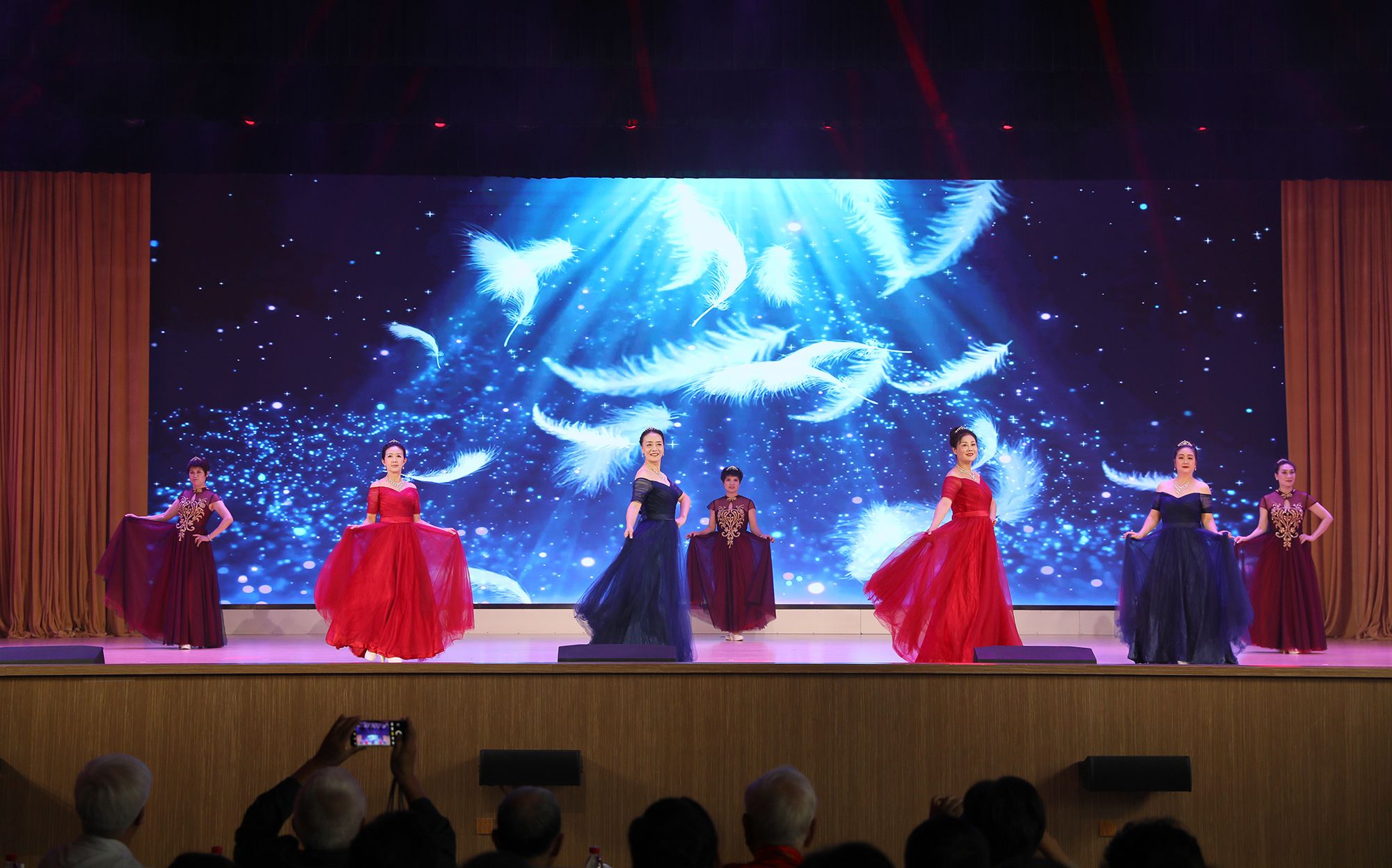 联欢会节目丰富、形式多样。大合唱《你在我心里》《复兴的力量》、诗朗诵《我的祖国,我深深爱恋的祖国》、葫芦丝演奏《唱支山歌给党听》《万疆》、京歌《中国脊梁》、舞蹈《中国梦》等,表达了全国各族人民对祖国的热爱之情和对美好生活的向往,展现出中华儿女为实现中华民族伟大复兴的坚定决心。《打起花鼓唱镇江》《最美中国秀》《太极功夫扇》展现了老同志昂扬向上的精神面貌。舞蹈《水韵江南杏花落》、器乐演奏《扬州小调》《步步高》、越剧《夫妻观灯》、女生合唱《萱草花》歌颂了幸福美好的生活,表达了对党的感恩情怀,展现了老同志的时代风采。男女生合唱《寸心》和大合唱《祖国不会忘记》向革命先烈致敬,向为祖国建设奋力拼搏的劳动人民致敬,向为学校事业发展奋力拼搏的乐鱼线上平台(集团)官方网站人致敬,将现场气氛推向高潮。