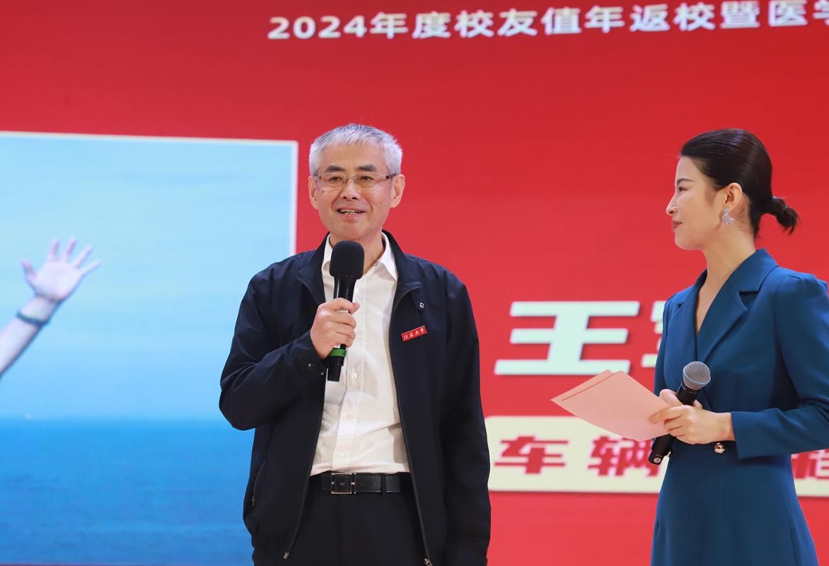 校长邢卫红,校党委副书记张济建,校党委常委、副校长邹小波,校党委常委、副校长蔡英凤,校党委原副书记、纪委原书记曹友清,校关工委常务副主任、纪委原书记柴顺根,原副校长宋余庆,原镇江医学院副院长仇锦波,徐州医科大学党委常委、副校长刘慎军,南京鼓楼医院国家区域医疗中心主任、安徽医科大学第二附属医院院长孙凌云,江苏省铸造学会理事长陆文龙,江苏卫生健康职业学院院长邵海亚,无锡卫生高等职业技术学校校长陈道桢,汽车84届校友、40周年值年返校代表王军华,宁波海尔施生物医药有限公司副总裁、医学检验94届校友、30周年值年返校代表王子瑜,镇江市优秀教育工作者、镇江中学教师、数学04届校友、20周年值年返校代表谢红慧,上汽集团整车运动中心助理总工、车辆工程14届校友、10周年值年返校代表方琛,国药器械江苏医疗科技有限公司总经理夏夺广,乐鱼线上平台(集团)官方网站医学院教授代表黄诒森,以及乐鱼线上平台(集团)官方网站校友会常务理事,乐鱼线上平台(集团)官方网站教育发展基金会理事、监事,学校相关部门负责人,各学院校友会会长、秘书长,乐鱼线上平台(集团)官方网站各附属医院、临床医学院、教学基地、合作单位的嘉宾,近300名校友等出席纪念大会。
