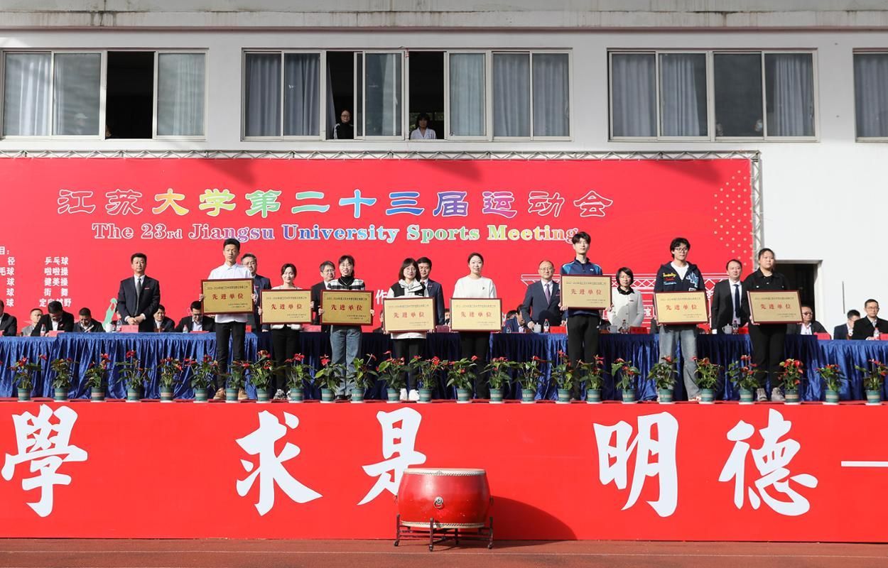 校党委常委、副校长任旭东宣读获得第二十二届运动会团体总分前八名的学院名单和关于表彰学生群众体育工作先进单位、教工群众体育工作先进单位的决定。