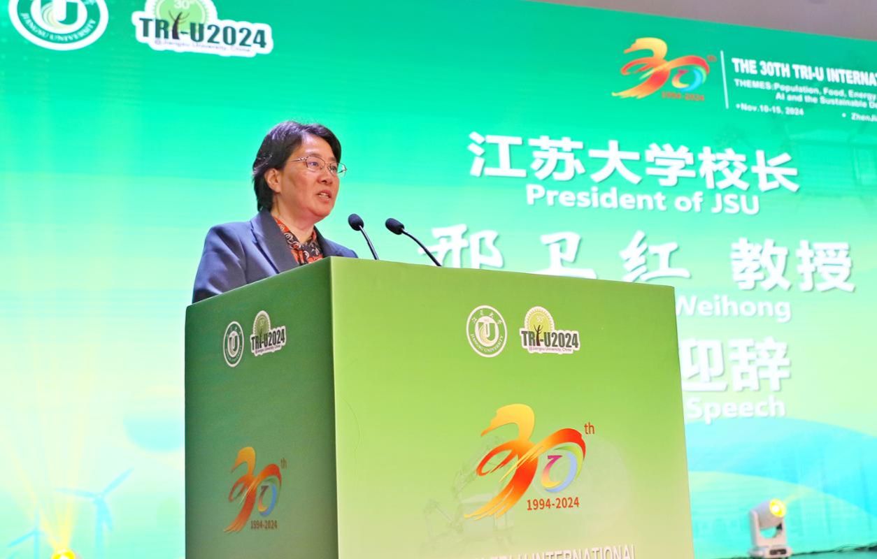 邢卫红在开幕式上致辞,代表学校对会议召开表示祝贺。邢卫红说,“三国三校”国际学术研讨会发起举办三十年来,已发展为覆盖亚洲10余所高校、近3000人参与的国际盛会,成为促进各国文化交流互鉴、青年人才培养、科技创新合作的重要平台。邢卫红指出,面对日益严峻的环境问题和资源挑战,绿色可持续发展成为全球共识。本届大会围绕人口增长、食品安全、能源危机、环境退化、人工智能伦理与应用等前沿热点问题展开研讨,对于推动文化交流互鉴、构建人类命运共同体具有十分重要的意义。她期待与会专家学者进一步加强交流合作,面向联合国2030年可持续发展议程目标,聚焦可持续发展面临的前沿问题,畅谈新观点、分享新成果,共同探索可持续发展领域融合创新的新路径、新模式,催生更多高水平合作成果,为推动区域乃至全球文化交流和可持续发展贡献更多智慧和力量。