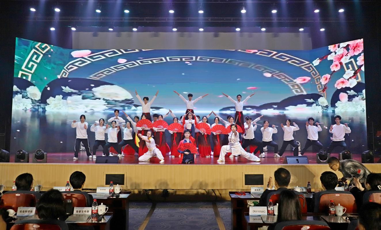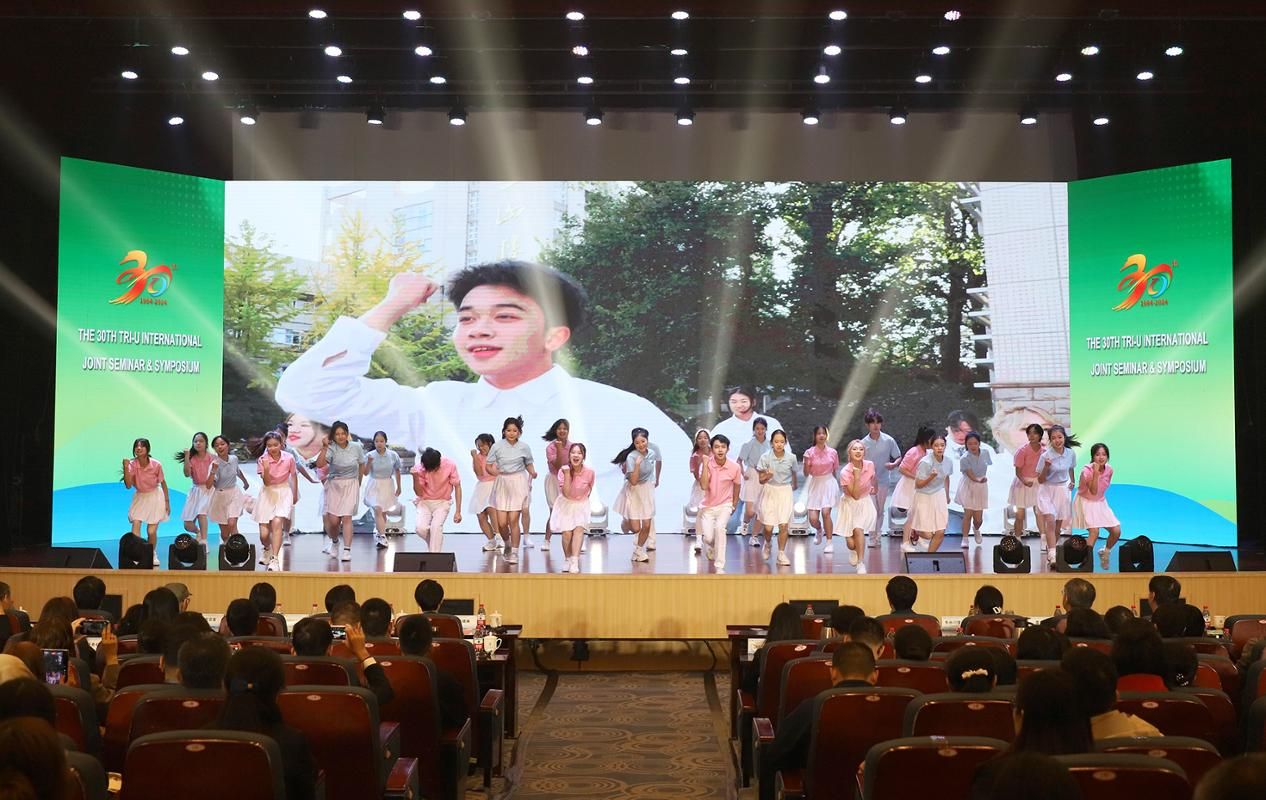 我校青年学生表演了精彩的文艺节目。开幕式上还播放了“三国三校”国际学术研讨会30周年纪念短片。