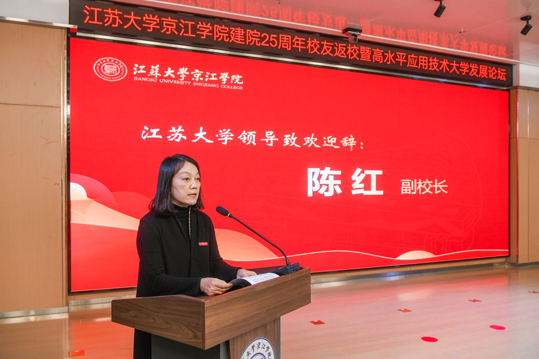 陈红致欢迎辞,她代表乐鱼线上平台(集团)官方网站向各位领导、各位嘉宾表示欢迎,向全体师生员工、广大校友致以问候,向关心支持京江学院发展的各级领导、各界朋友、兄弟高校表示感谢。陈红表示,25年来,京江学院紧紧依托母体乐鱼线上平台(集团)官方网站,事业发展呈现新面貌,高质量发展迈出新步伐。她希望全体师生同心协力,继续为实现高水平应用技术大学目标砥砺前行,为区域经济社会发展作出新的贡献。