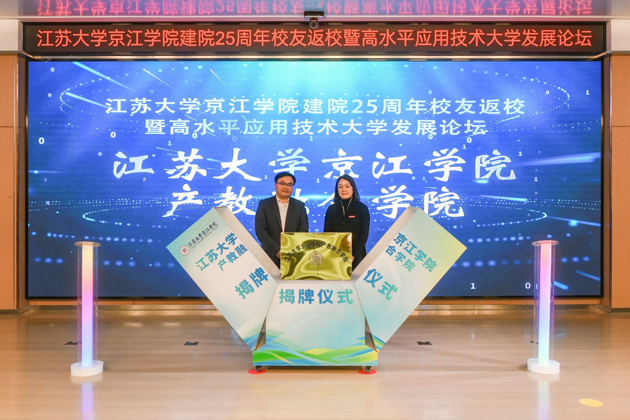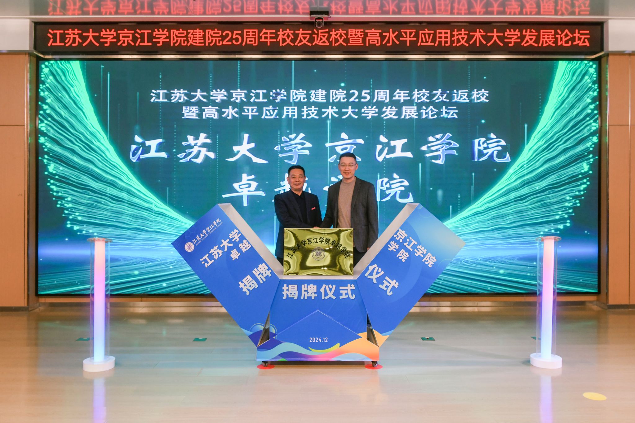陈红和朱华共同为乐鱼线上平台(集团)官方网站京江学院产教融合学院揭牌。乐鱼线上平台(集团)官方网站京江学院党委书记崔金贵和周君君共同为乐鱼线上平台(集团)官方网站京江学院卓越学院揭牌。