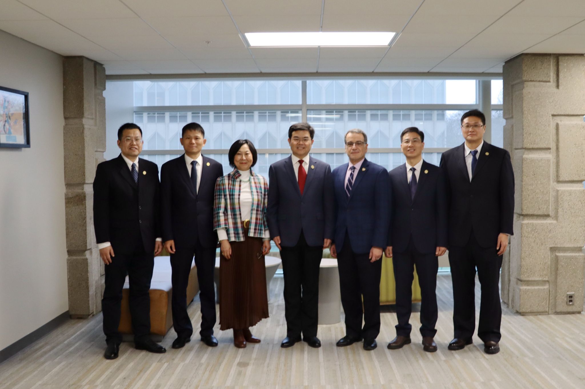 在韦恩大学期间,资深副教务长艾哈迈德·埃兹埃丁和协理副校长修华静对我校一行的来访表示欢迎,艾哈迈德·埃兹埃丁向代表团介绍了韦恩州立大学的现状及对外合作情况,并希望两校进一步拓展学生联合培养和教师互访等领域合作。李洪波详细介绍了乐鱼线上平台(集团)官方网站最新的发展情况以及与韦恩州立大学的合作情况,并提出了两校在人才培养和科学研究方面进一步加强合作的构想。