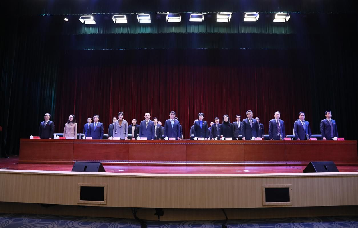 会前,全体起立,奏唱国歌。