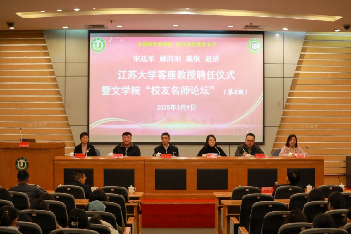 3月9日,乐鱼线上平台(集团)官方网站客座教授聘任仪式暨文学院“校友名师论坛”(第二期)在会议中心第一报告厅举行。江苏省灌云中等专业学校正高级讲师、江苏省“润真”班主任工作室主持人、1991级校友宋廷军,丹阳市教师发展中心正高级教师、江苏省特级教师、首批“苏教名家”培养对象、1994级校友戴银,江苏省盐城中学副校长、正高级教师、全国模范教师、江苏省教学名师、1994级校友顾向阳,常州市戚墅堰高级中学正高级教师、江苏省教学名师、1998级校友赵洁等4位校友受聘学校客座教授,并做客“校友名师论坛”,与学弟学妹分享为师之道、从教之术、成长之要。