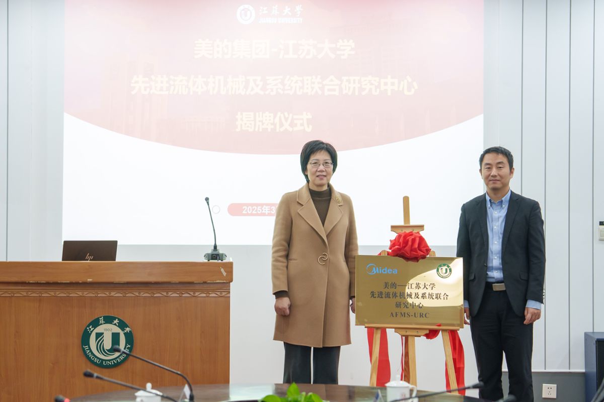 李红和彭勃共同为美的集团—乐鱼线上平台(集团)官方网站先进流体机械及系统联合研究中心揭牌,美的集团李忠华、能源与动力工程学院院长潘剑锋代表共建双方现场签约。