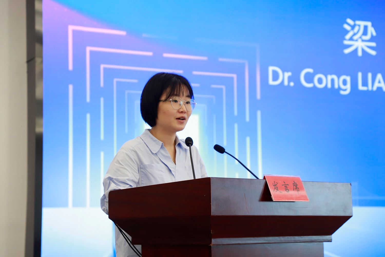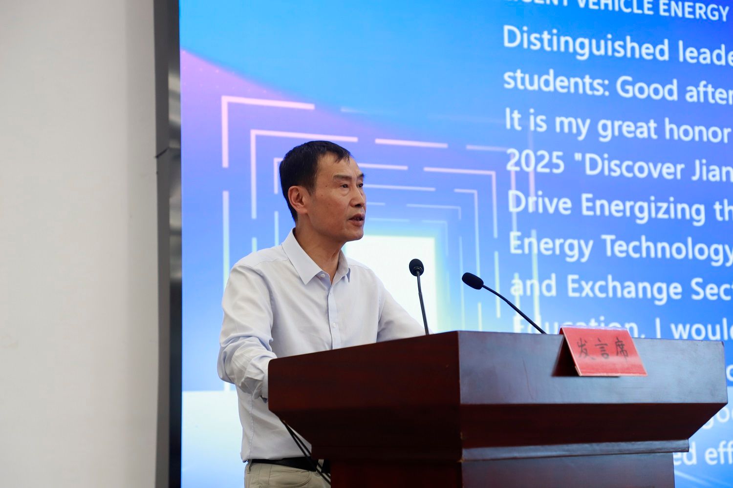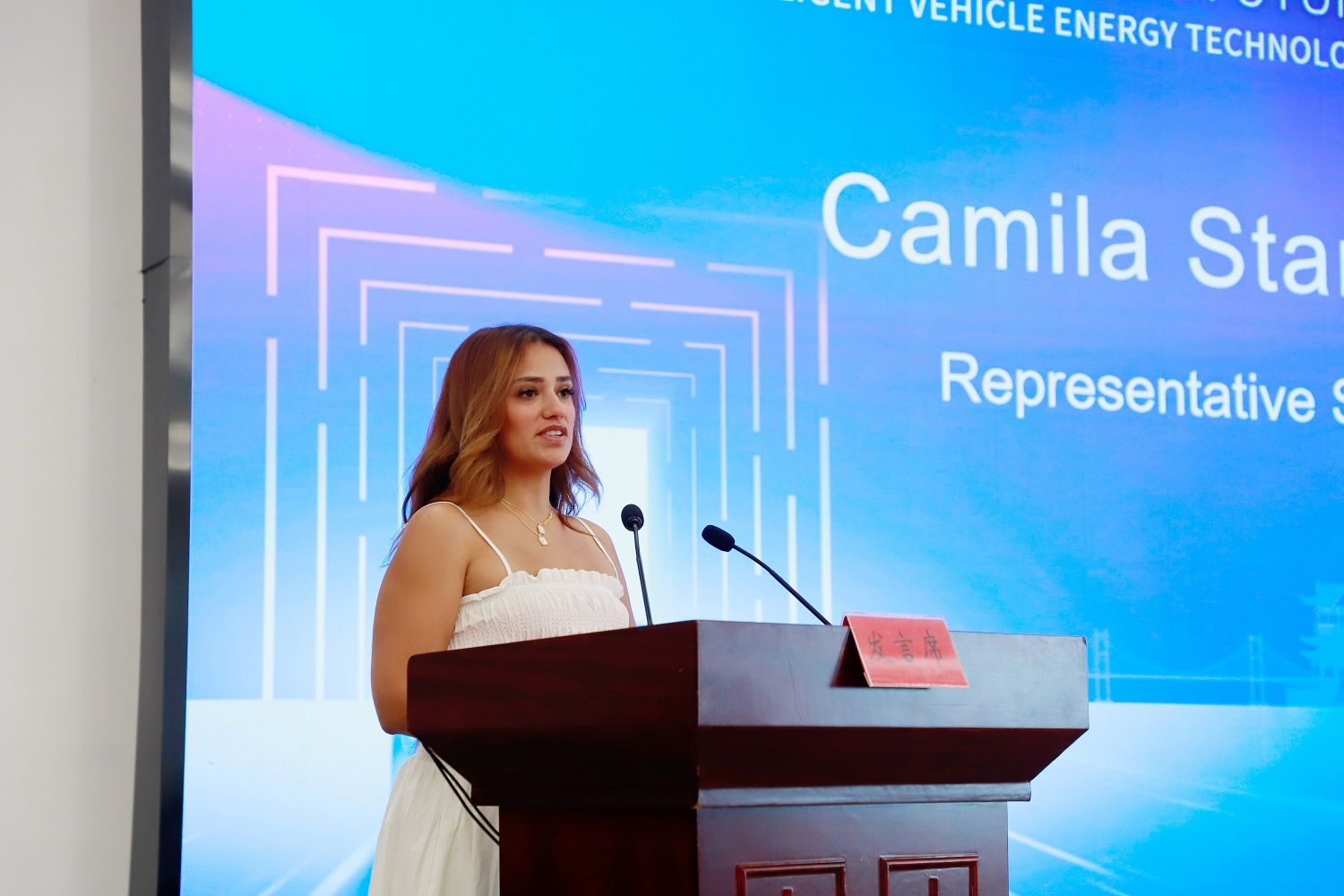 汽车工程研究院教师梁聪与美国学生卡米拉·斯塔塔普作为师生代表分别发言。