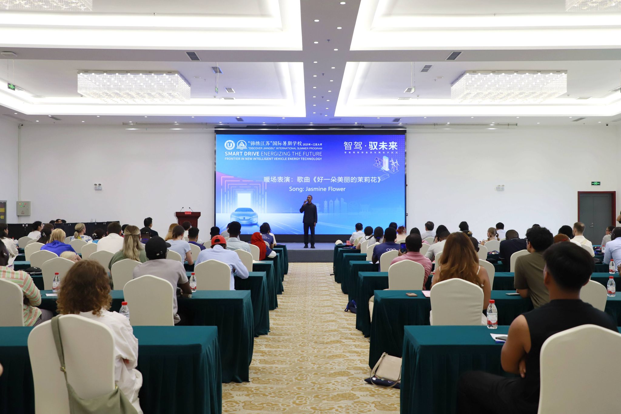 江苏省教育厅对外合作与交流处二级调研员庾卫东、江苏省高等教育学会外国留学生教育管理研究委员会副理事长/秘书长张海军、镇江市人民政府外事办公室主任卢利林 、镇江市侨联主席王永新、乐鱼线上平台(集团)官方网站党委常委、副校长蔡英凤,党委宣传部、统战部、国际处、团委、海外教育学院、汽车工程研究院有关领导出席仪式。开营仪式由海外教育学院院长吴鹏主持。