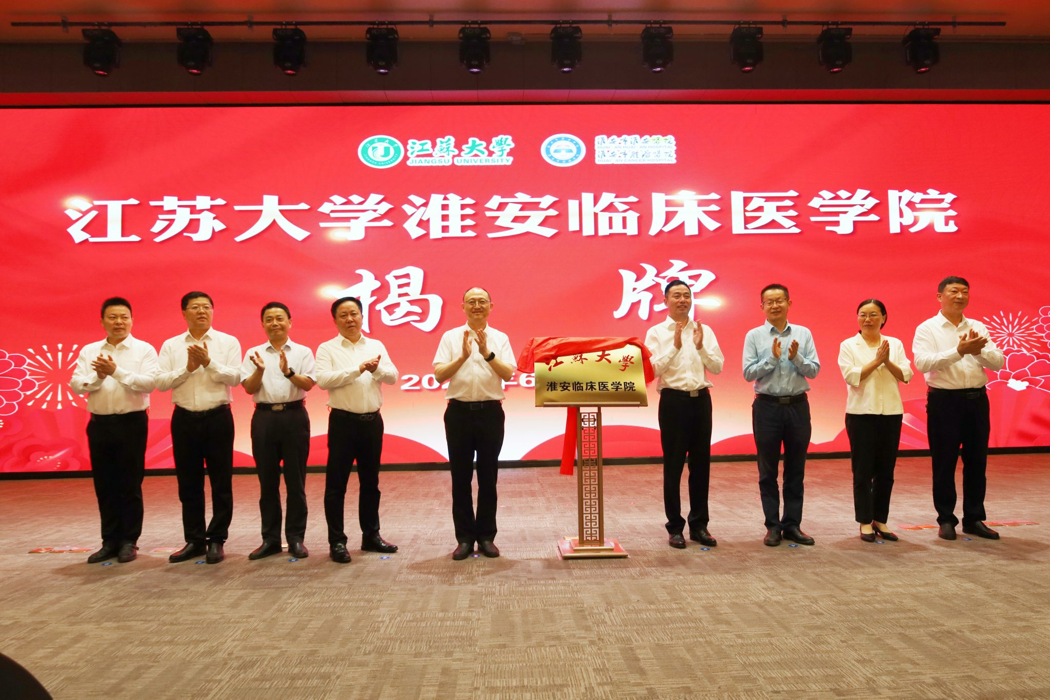 6月13日,我校与淮安市淮安医院正式签约成立乐鱼线上平台(集团)官方网站淮安临床医学院,签约揭牌仪式在淮安市淮安医院举行。校党委副书记张济建、淮安区委书记颜复共同为乐鱼线上平台(集团)官方网站淮安临床医学院揭牌,乐鱼线上平台(集团)官方网站卓越医师学院党委书记殷朝峰、淮安市淮安医院院长薛同庆签署合作协议。仪式由卓越医师学院院长徐岷主持。