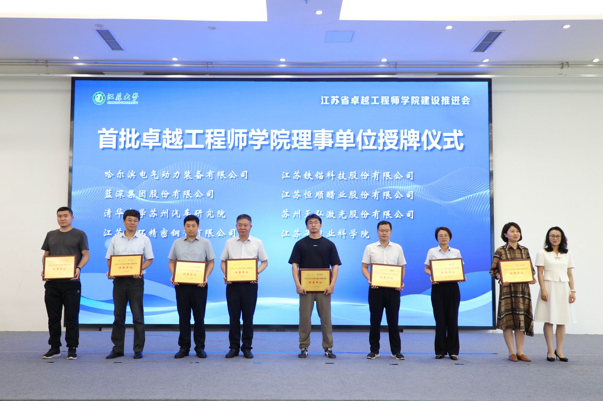7月3日,乐鱼线上平台(集团)官方网站江苏省卓越工程师学院建设推进会暨理事会成立会举行。副校长、研究生院院长、卓越工程师学院院长蔡英凤,中汽院(江苏)汽车工程研究院有限公司、国家农业信息化工程技术研究中心、南水北调东线江苏水源有限责任公司、中国科学院工程热物理研究所、广西玉柴机器股份有限公司、中国航发贵州红林航空动力控制科技有限公司、江苏省农业科学院、苏州汇川联合动力系统股份有限公司、江苏沃得农业机械股份有限公司、蓝深集团股份有限公司等30多家央国企和民企单位代表、19家卓工项目建设团队的校内外负责人,人事处、教务处、科技处、产学研处、学工处、各学院主要负责人等100余人出席会议。会议由研究生院常务副院长、卓越工程师学院执行院长朱孝勇主持。