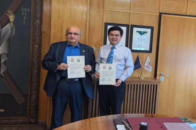 6月23日,代表团首站访问希腊帕特雷大学(University of Patras),与校长克里斯托斯•布拉斯(Christos Bouras)、学术与国际事务副校长迪奥尼修斯•曼察维诺斯(Dionissios Mantzavinos)举行会谈。双方正式签署合作意向书,致力于创建“一带一路”智慧农业技术与装备国际联合实验室,同步启动学生互换交流与境外办学项目,标志着中希高校合作迈入深度融合新阶段。当日,代表团还拜访了历史悠久的希腊雅典科学院,美国国家工程院院士、希腊科学院院士、希腊雅典国立技术大学化学工程教授Doros Nicolas Theodorou等热情接待。双方就开拓科技合作渠道、促进乐鱼线上平台(集团)官方网站与希腊雅典科学院开展技术交流、高层次人才引进与输出达成共识。