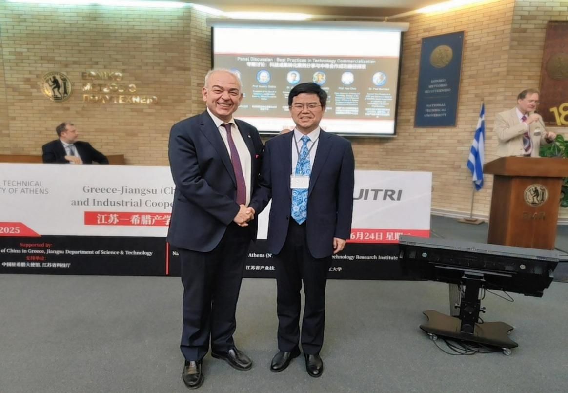 6月24日,代表团在希腊雅典国立技术大学参加“江苏—希腊产学研合作交流会”。江苏省委书记信长星、希腊阿提卡省省长尼科斯·哈扎利亚斯(Nikos Hardalias)、中国驻希腊大使方遒等出席会议,来自两国政府、高校、科研机构和企业的160余位代表参会。会议聚焦人工智能、绿色能源、海洋工程等前沿领域,深入探讨中希在科技创新与成果转化方面的合作潜力,积极拓展双方产学研融合发展的新路径。李洪波一行与雅典国立技术大学校长IOANNIS K. CHATJIGEORGIOU、校董事会理事Sergios Theodoridis对接“一带一路”智慧农业技术与装备相关合作,向希腊高新技术园区、高校院所及科技企业推介乐鱼线上平台(集团)官方网站技术成果,推动务实对接。代表团还与中国驻希腊大使馆教育参赞王瑾、亚里士多德大学代表TZOUVELEKAS MANOLIS对接了技术转移、学生流动项目合作。