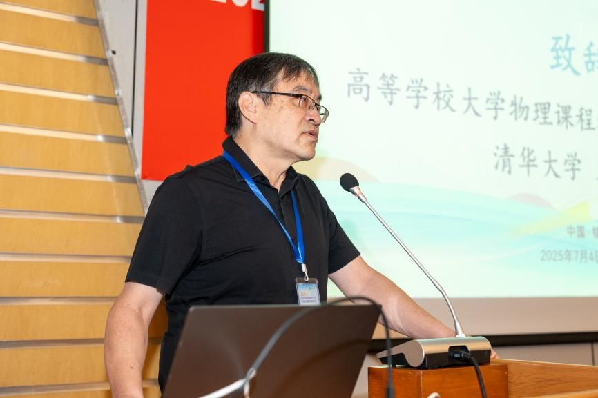 教育部大学物理课程教学指导委员会主任委员、清华大学教授王青致辞,结合自身的研究与实践经验,深入分析了当前教育数字化面临的机遇与挑战,鼓励与会专家学者积极投身到物理基础课程数字化建设的浪潮中,共同探索创新教学模式和方法,为我国高等教育事业的发展贡献智慧。