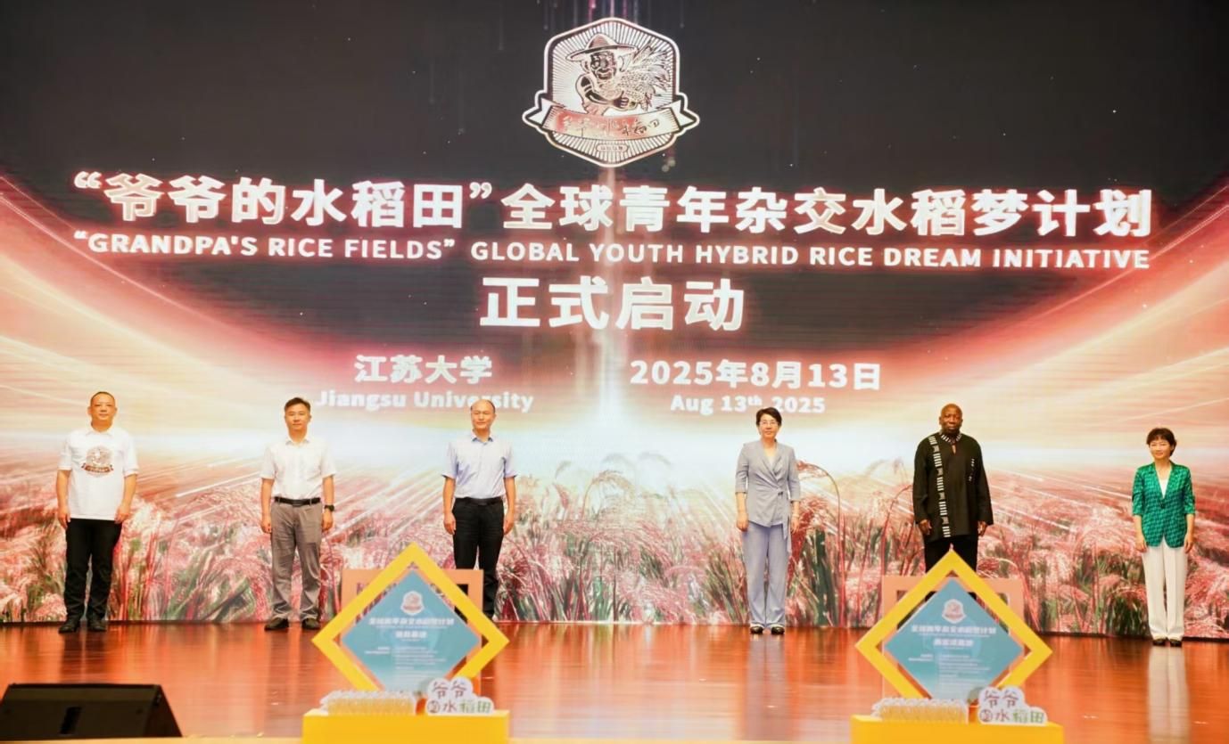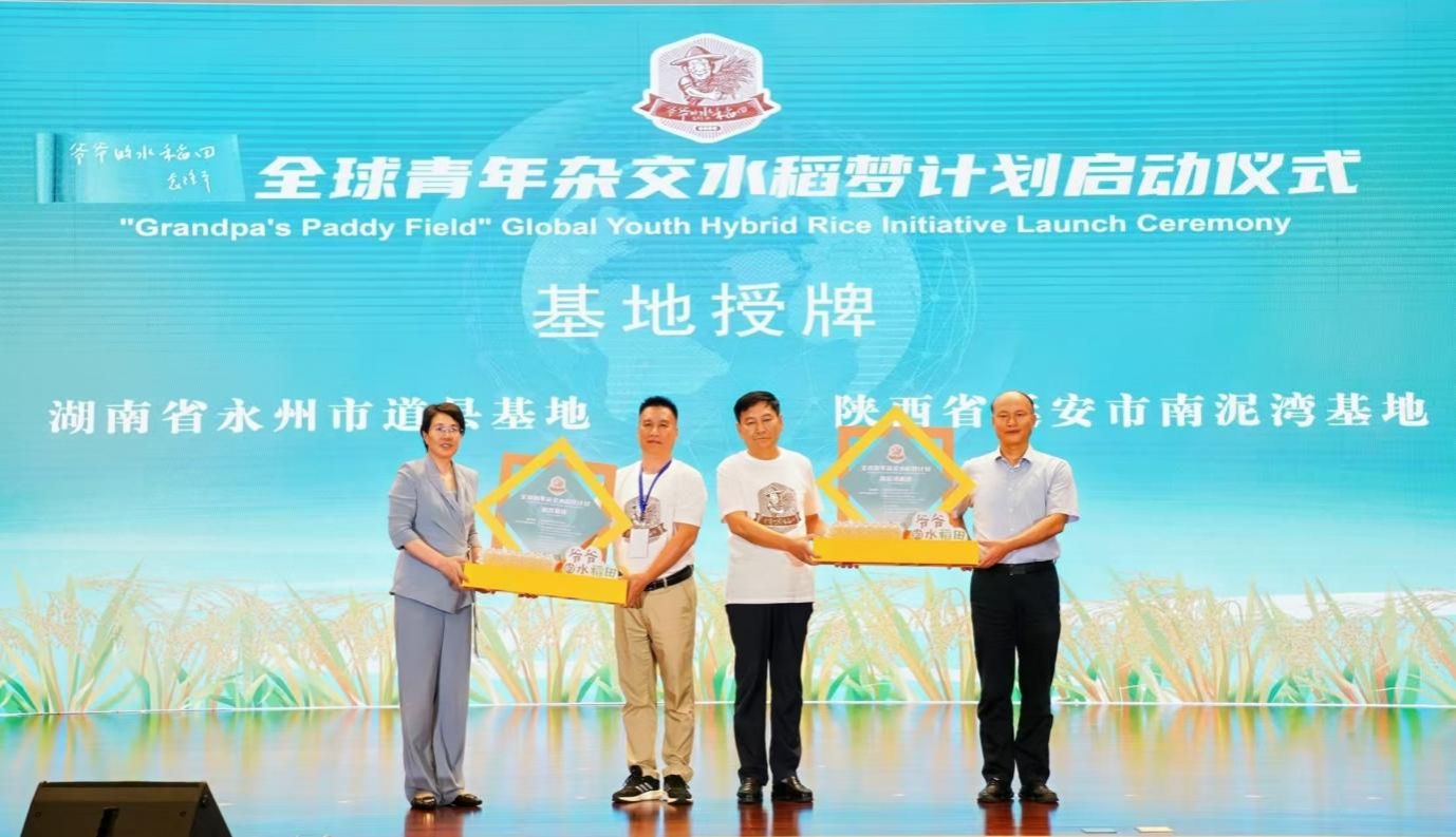 徐树仁、邢卫红、潘永圣、菲利克斯、辛业芸、曾松亭共同启动“爷爷的水稻田”全球青年杂交水稻梦计划,标志着该计划正式启航。
