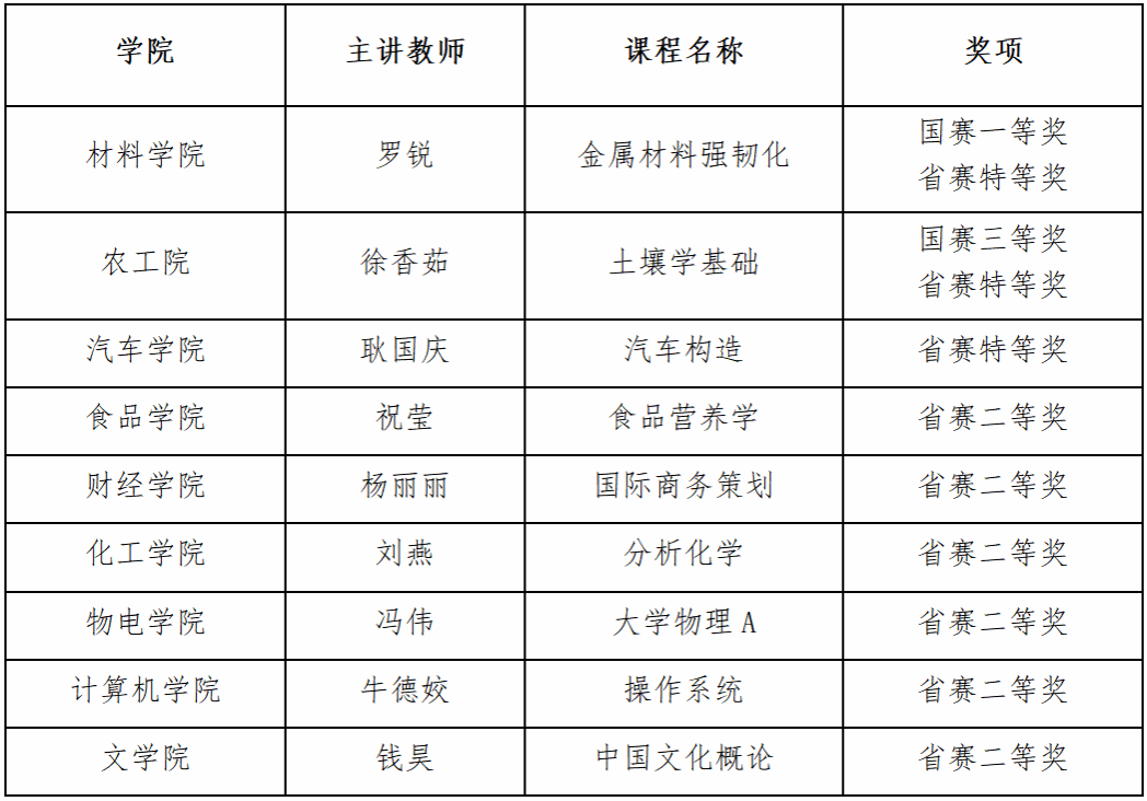 材料科学与工程学院罗锐副教授团队主讲的“金属材料强韧化”课程斩获产教融合地方高校组一等奖,农业工程学院徐香茹讲师团队主讲的“土壤学基础”课程获得新农科三等奖。