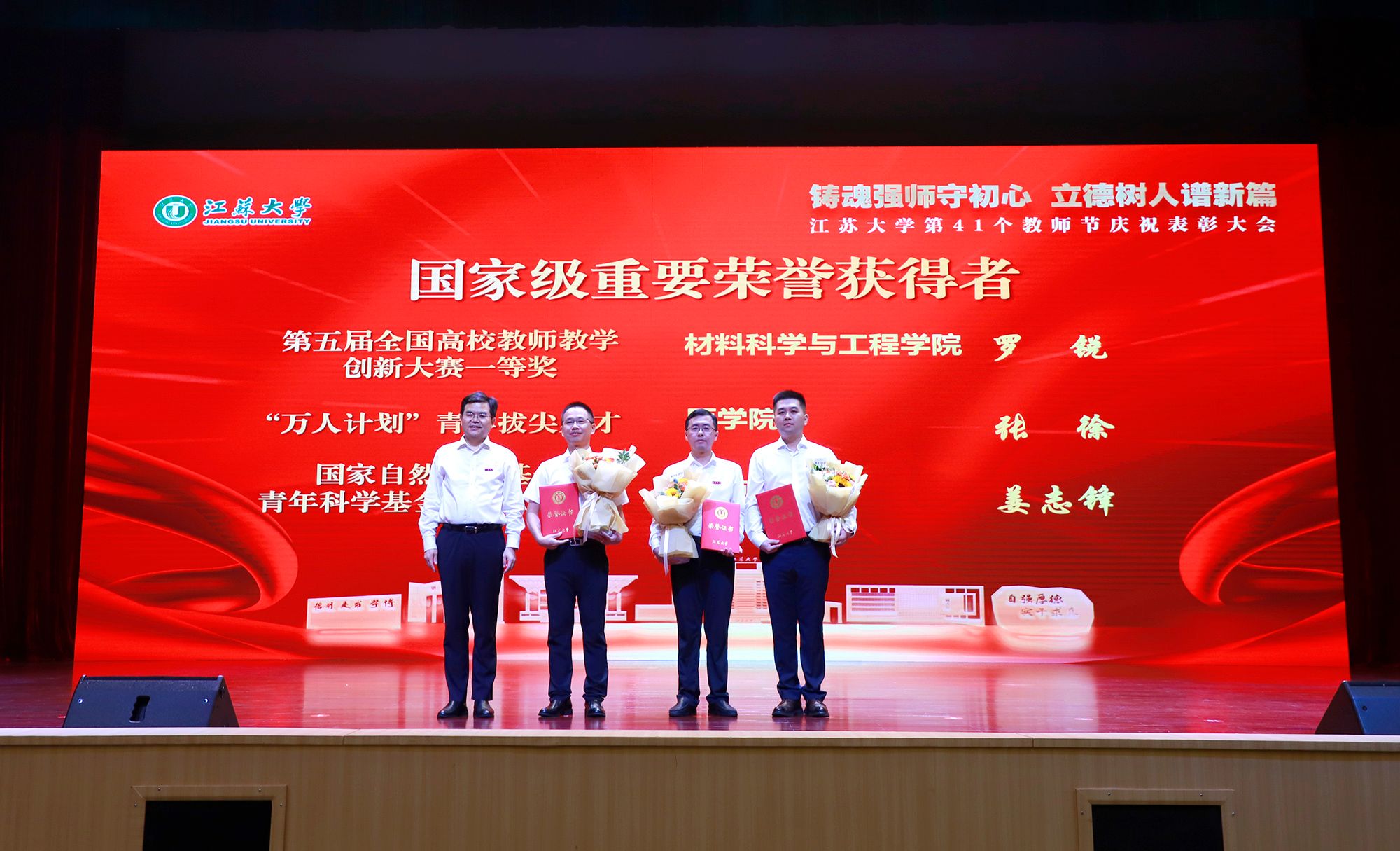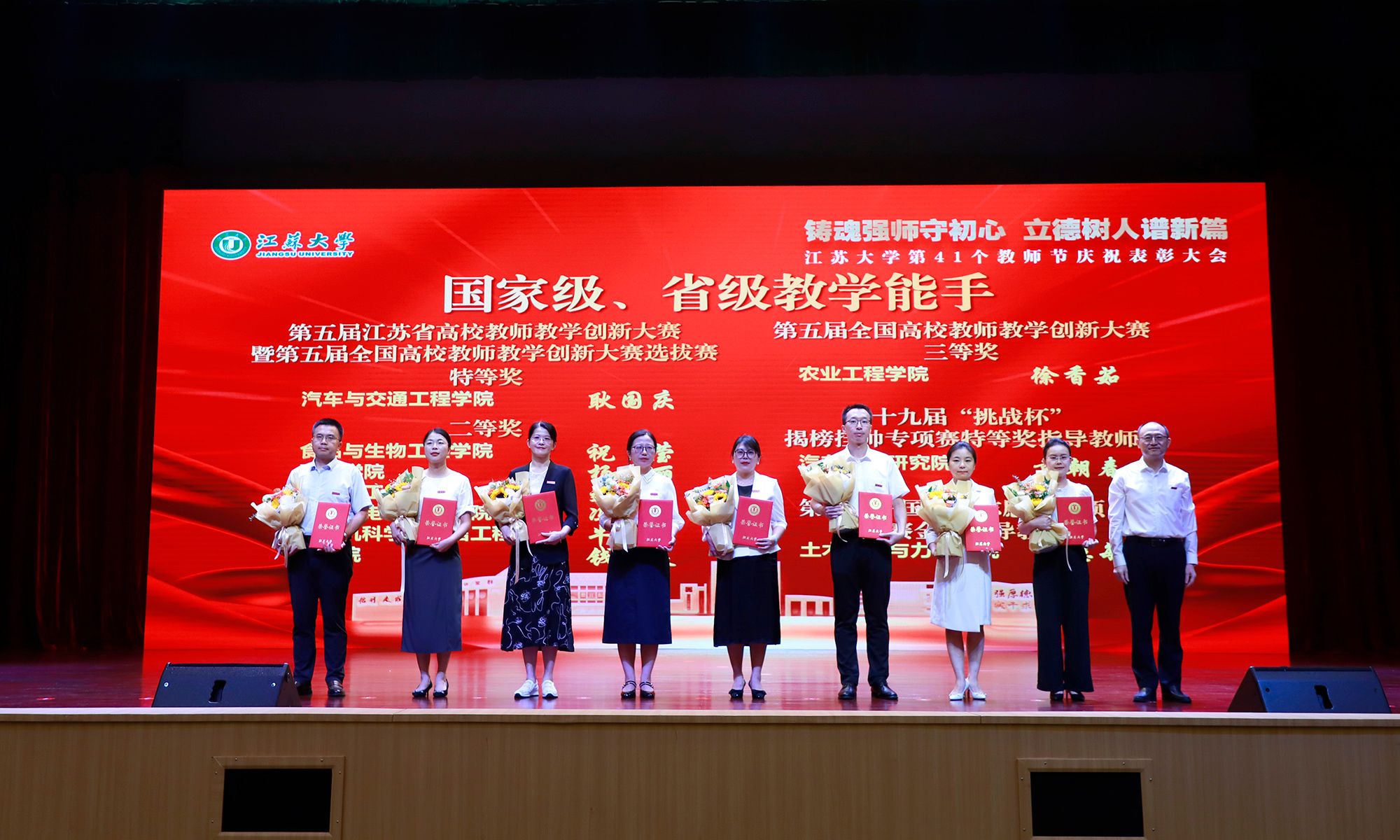 表彰环节,李洪波为国家级重要荣誉获得者颁奖,张济建为国家级、省级教学能手颁奖,陈红、邹小波、王景全为省级人才工程入选者颁奖,杜永春为师德师风先进典型颁奖,杨敬江为乐鱼线上平台(集团)官方网站十佳辅导员颁奖,吴麟麟为乐鱼线上平台(集团)官方网站最受学生欢迎的十佳教师颁奖。