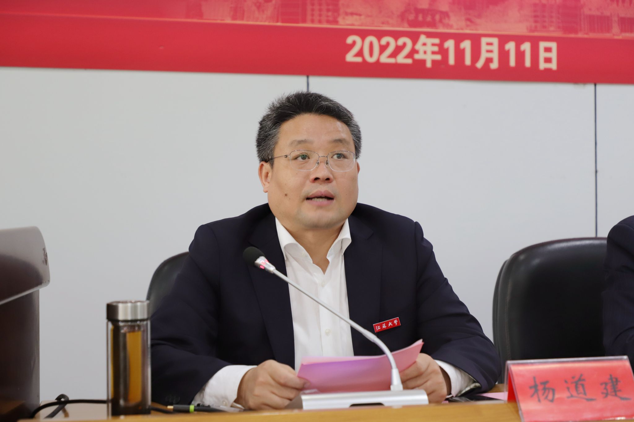11月11日,学校在会议中心第三报告厅举办学习贯彻党的二十大精神宣讲团动员暨集体备课会。校党委书记袁寿其,校党委副书记李洪波,校党委常委、宣传部部长杨道建,相关职能部门负责人,各二级党组织书记以及学校学习贯彻党的二十大精神宣讲团成员参加会议。会议由李洪波主持。