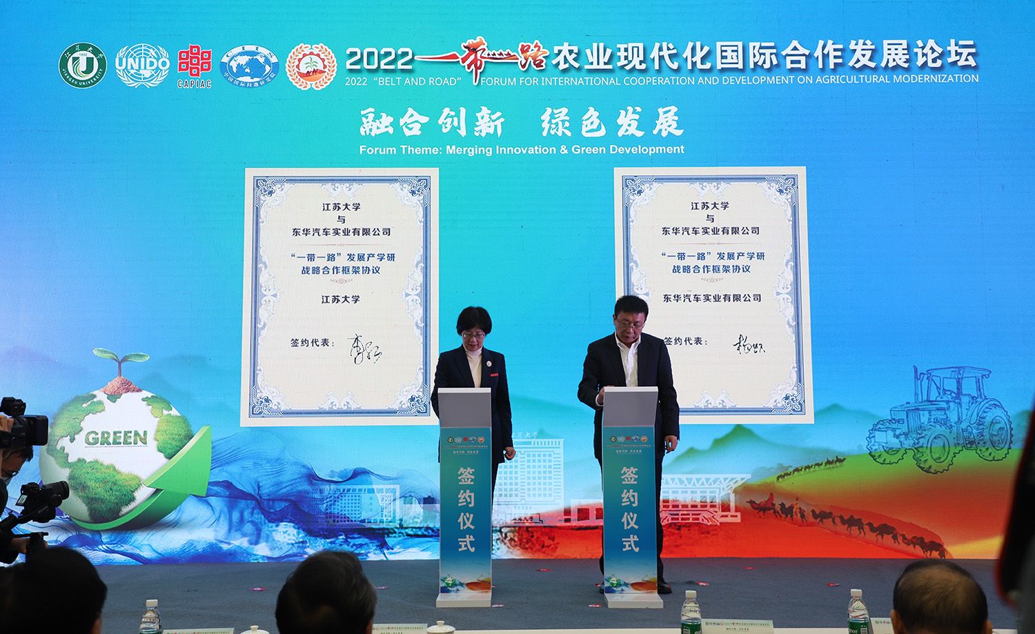 项目仪式上,农业装备国际(产能)合作联盟—中东欧国家农业现代化产学研示范中心成立、农业装备国际(产能)合作联盟智库揭牌、乐鱼线上平台(集团)官方网站与东华汽车实业有限公司成立“一带一路”发展基金签约、国际人才“感知中国”教育基地和国际人才创新实践基地授牌。