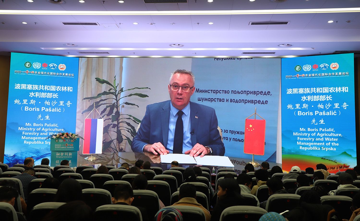中国农业国际合作促进会会长许国成、中国农业机械工业协会执行副会长赵剡水、中国国际发展知识中心副主任蒋希蘅、中国教育国际交流协会副秘书长安延、中国农业机械化协会副秘书长夏明、中国农业科学院海外中心副主任聂凤英、农业农村部对外经济合作中心国际组织处副处长于浩淼、中国商业股份制企业经济联合会国际文化教育交流促进工作委员会主任邹海、中国国际科技促进会常务理事邢纪国;以及联合国粮农组织驻华代表文康农,联合国粮农组织植物生产与保护司司长夏敬源,联合国工业发展组织农业司司长德耶内·泰泽拉,联合国亚洲及太平洋经济社会委员会战略与项目管理司司长阿德南·阿里亚尼,联合国可持续农业机械化中心副主任安书曼,世界粮食计划署中国办公室南南合作主管贾焰,巴基斯坦国家农业研究委员会主席古兰·穆罕穆德·阿里尼,波黑塞族共和国农林水利部部长鲍里斯·帕沙里奇,莫桑比克教育部前部长、莫桑比克师范大学校长豪尔赫·费劳,尼泊尔跨喜马拉雅友好协会主席拉吉姆·库玛·贾哈,加纳苏尼亚尼能源与自然资源大学校长埃尔维斯·阿萨雷·比迪亚高,波黑塞族共和国巴尼亚卢卡大学副校长米罗斯拉夫·马利诺维奇等国内国际嘉宾线上出席论坛。