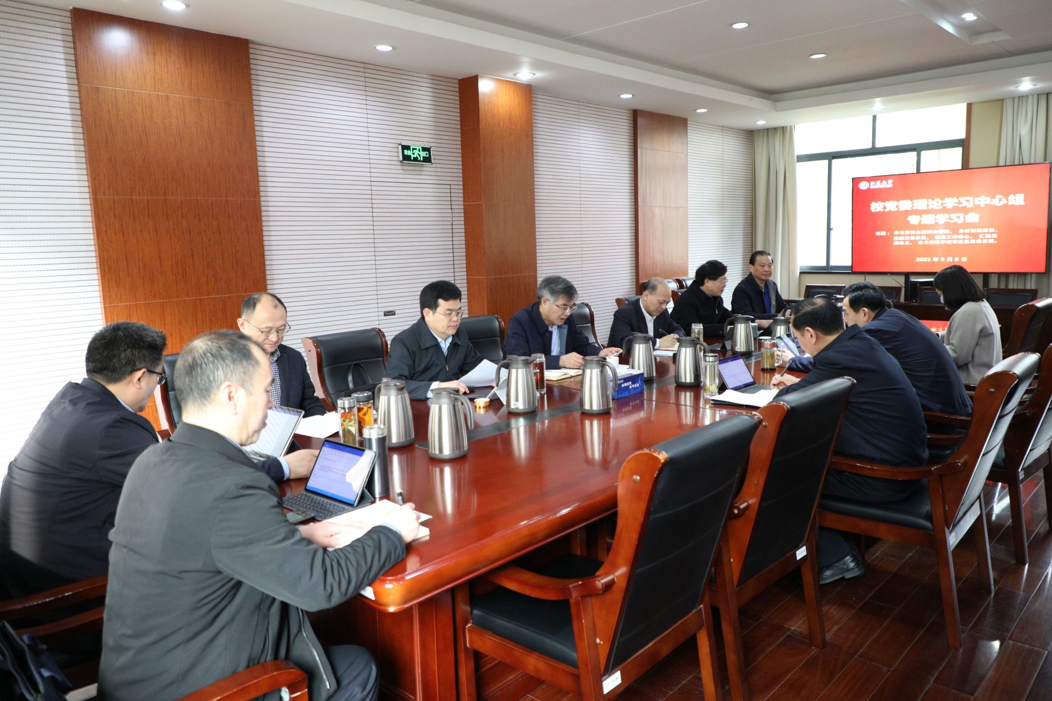 3月8日,校党委理论学习中心组在行政一号楼201会议室专题学习2023年全国两会精神。校党委理论学习中心组全体成员参加学习,专题学习由校党委书记袁寿其主持。