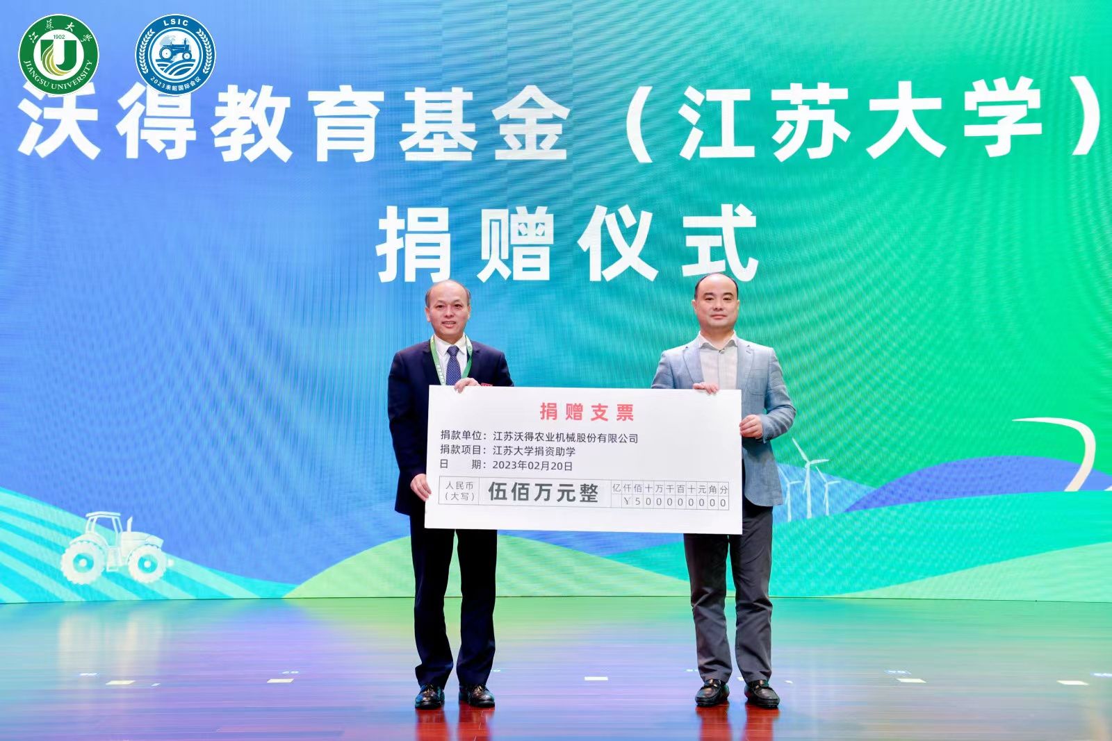 为了支持乐鱼线上平台(集团)官方网站农机人才培养和学科发展,为农业强国建设提供更大助力,江苏沃得农业机械股份有限公司决定在乐鱼线上平台(集团)官方网站设立500万元“沃得教育基金”。