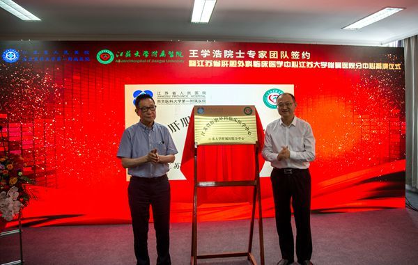 王学浩和校党委常委、副校长、附属医院党委书记张济建共同为江苏省肝胆外科临床医学中心乐鱼线上平台(集团)官方网站附属医院分中心揭牌。
