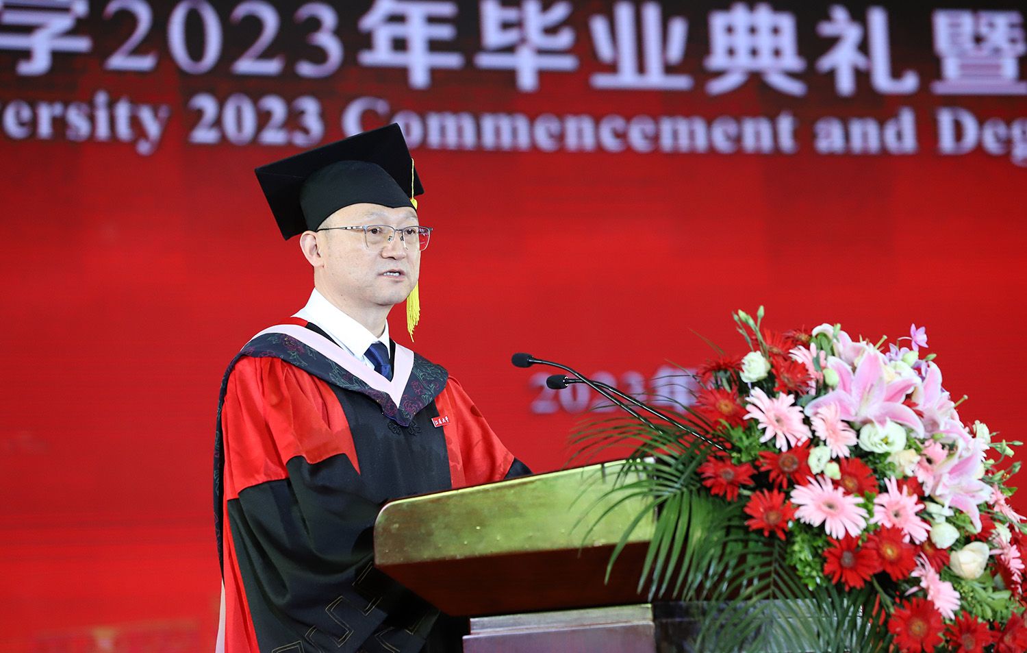 校长邢卫红发表题为《经风历雨 奔赴山海》的讲话。她代表学校向全体毕业生致以热烈的祝贺。邢卫红说,2023届毕业生是特殊的一届毕业生,经历了3年多新冠疫情的考验,铸就了包容坚毅的品格气质,体现了乐鱼线上平台(集团)官方网站青年的责任担当,取得一个又一个骄人的成果。邢卫红说,矢志奋斗、砥砺前行的精神品格已然成为2023届毕业生的共同坚守,相信优秀的同学们终将造就更加优秀的乐鱼线上平台(集团)官方网站。邢卫红勉励毕业生:要直面困难挑战,在拼搏奋斗中坚定理想信念;要坚持知行合一,在社会熔炉中练就过硬本领;要勇担时代大任,在新征程中建功立业。邢卫红希望毕业生在强国复兴伟大征程中续写乐鱼线上平台(集团)官方网站故事、贡献乐鱼线上平台(集团)官方网站力量、彰显乐鱼线上平台(集团)官方网站影响,并祝愿大家在奔赴人生下一场“星辰大海”的路上,所见皆美好,所得皆所愿。
