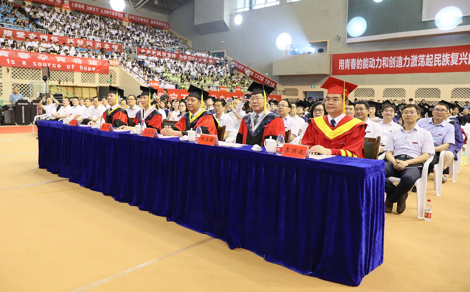 全体在校校领导、校党委常委出席典礼。相关部门和各学院主要负责人、教师代表、校友代表、毕业生代表等现场参加典礼。副校长张济建主持典礼。