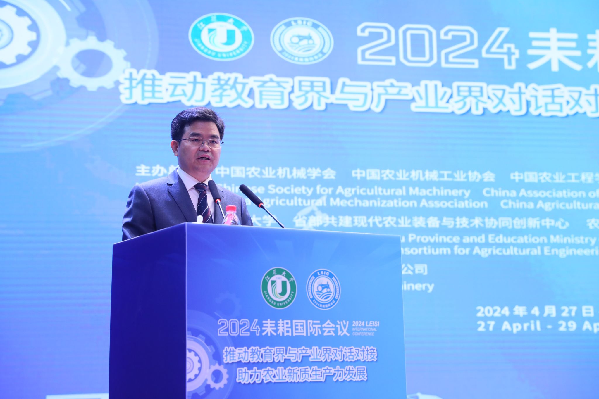 乐鱼线上平台(集团)官方网站党委书记李洪波、江苏省政协副主席洪慧民、江苏省农业农村厅一级巡视员沈毅、江苏省工业和信息化厅副厅长张星、江苏省教育厅二级巡视员周玖华、中国农业机械工业协会执行副会长赵剡水、联合国可持续农业机械化中心项目顾问Karen Martinez在开幕式致辞。