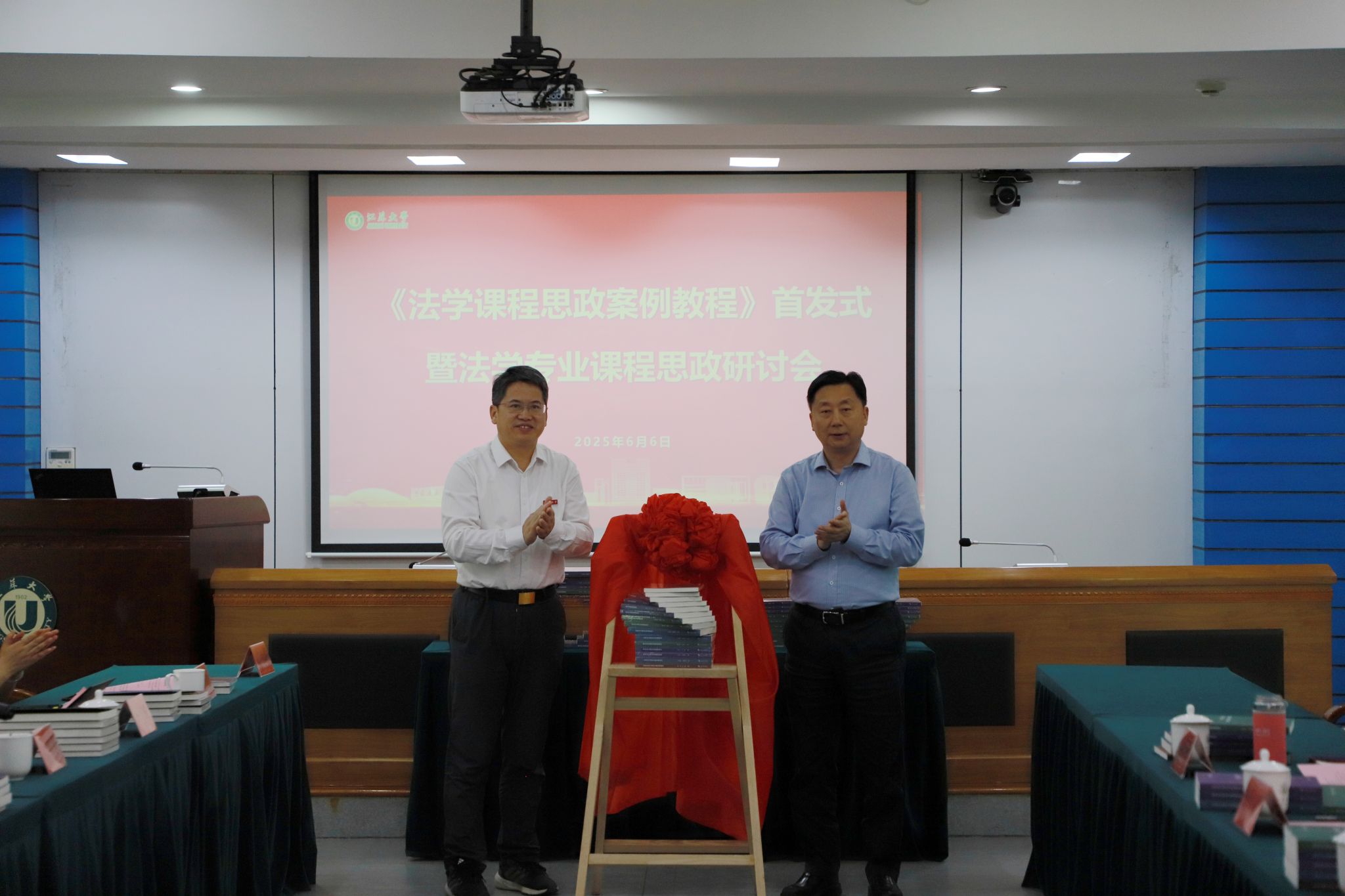 活动中,丛书主编夏锦文与乐鱼线上平台(集团)官方网站副校长邹小波共同为《法学课程思政案例教程》首发揭彩。