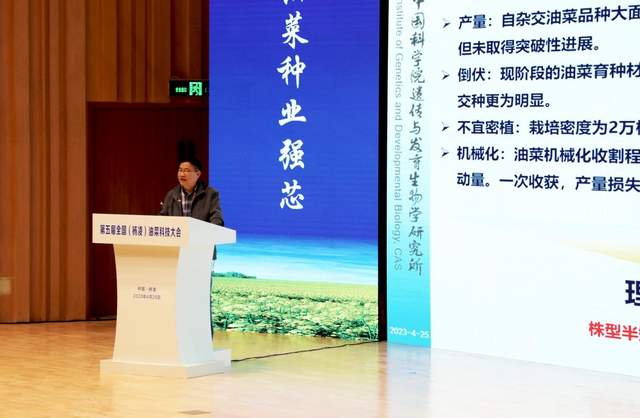 “自杂交油菜品种大面积推广应用以来,油菜产量虽有提升,但未取得突破性进展,因此我们呼唤理想株型育种。油菜将来的株型要半矮化、分枝紧凑、耐密植、便于机械化收割。”中国科学院遗传所研究员胡赞民在作《甘蓝型油菜理想株型新品种培育》推介报告中说道。