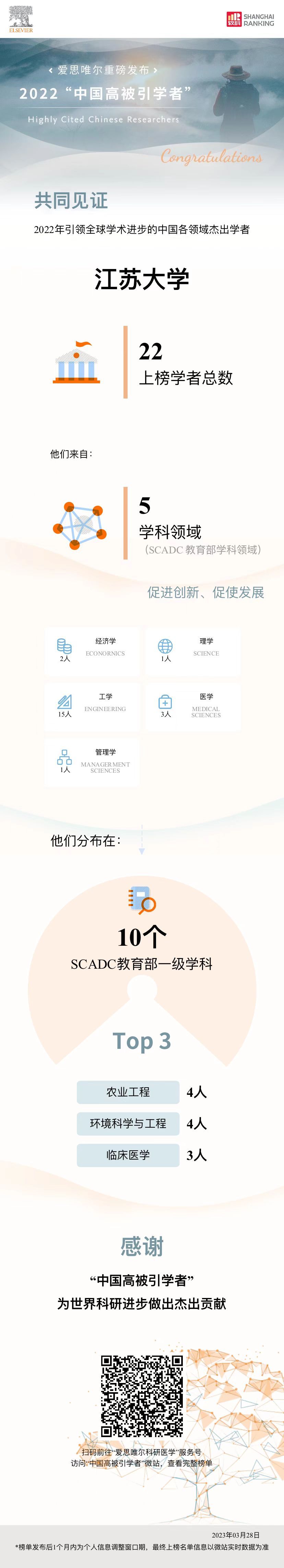 3月28日,爱思唯尔(Elsevier)出版公司正式发布2022年“中国高被引学者”榜单,全国共有来自504所高校、科研机构及企业的5216位学者入选。其中,乐鱼线上平台(集团)官方网站共有22人入选,较上年增加3人。