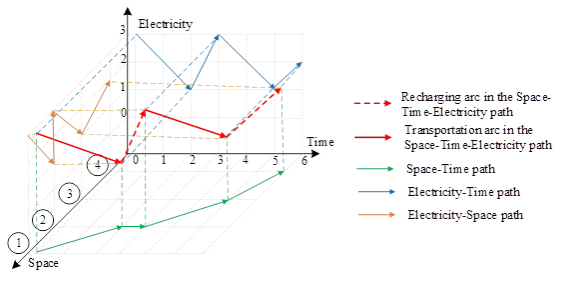 宋茂灿老师和东南大学程琳教授把现有的空间可达性和时空可达性拓展为时间-空间-电量(时空电)可达性,将时空电可达性纳入到充换电设施布局优化中,从时间、空间、电量三个维度探究可达性和充换电设施布局之间的关系。以最大化电动汽车出行者的时空电可达性为目标,构建时空电网络流布局模型并设计三种分解算法:拉格朗日松弛、Benders分解、交替方向乘子法,成果分别发表在Expert Syst Appl、Sustainable Cities and Society、Comput Ind Eng。