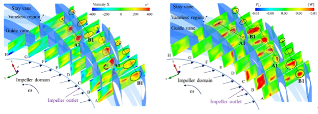 张德胜研究员团队在Energy Conversion and Management发表论文,基于SST-SAS湍流模型和模型试验,重点从内流特性、能量损失机理、压力脉动和激振力特性等方面探讨了导叶开度对失速工况下水动力特性的影响,阐明了导叶开度对水泵水轮机失速特性的影响规律,明确了流动失稳现象诱导水力不稳定性的内在原因。
