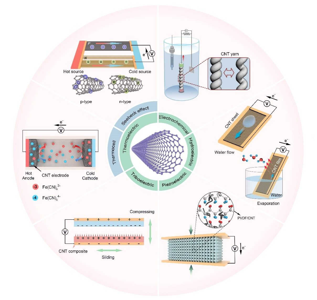 胡兴好副教授与德州大学达拉斯分校Ray H. Baughman等人全面回顾了各种基于CNT的能量收集技术,包括电化学、水伏、摩擦电、压电以及热电发电机,重点阐述了不同发电技术的工作原理、典型实例以及未来挑战和发展方向。相关成果发表在Advanced Materials。